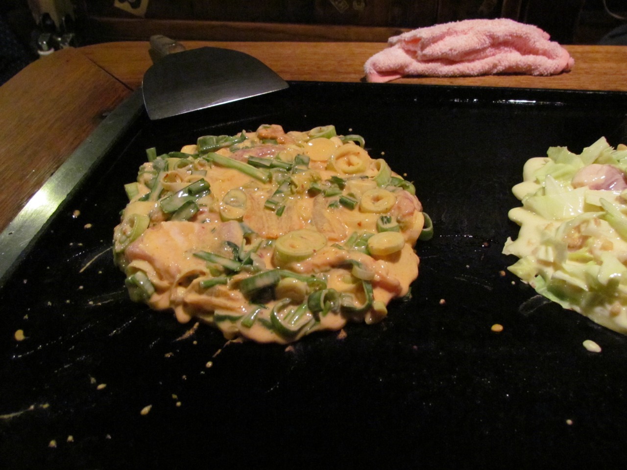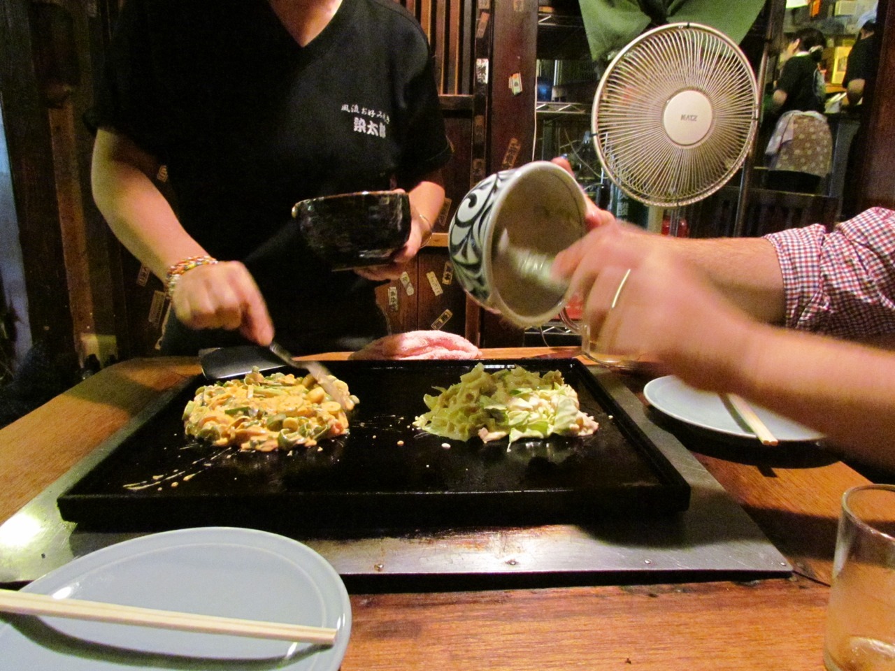 Do-it-yourself okonomiyaki (Japanese pancakes) in Asakusa.