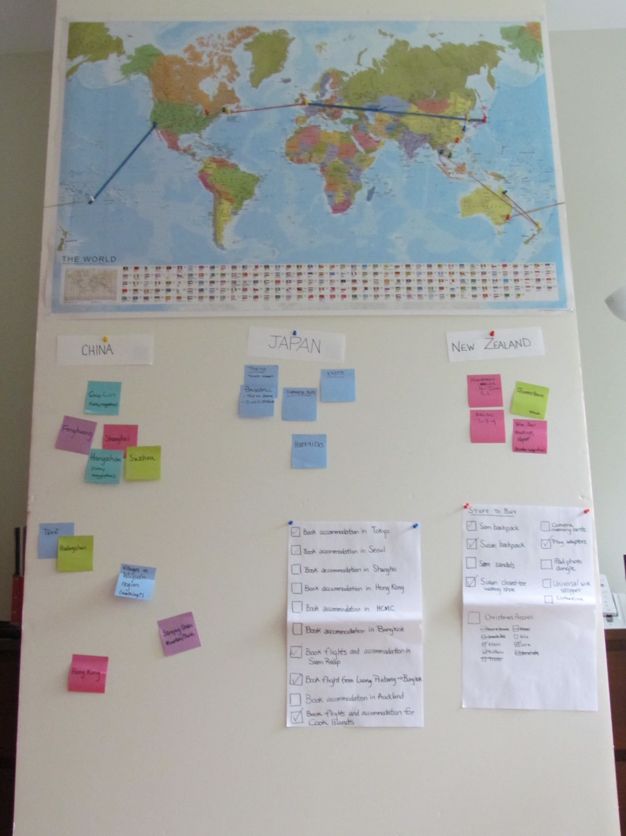 Trip 2013 4 month trip = 2 8’x4’ foam-core boards + lots of stickies + endless to-do lists. planning 0 Susan & Sam September 2, 2013