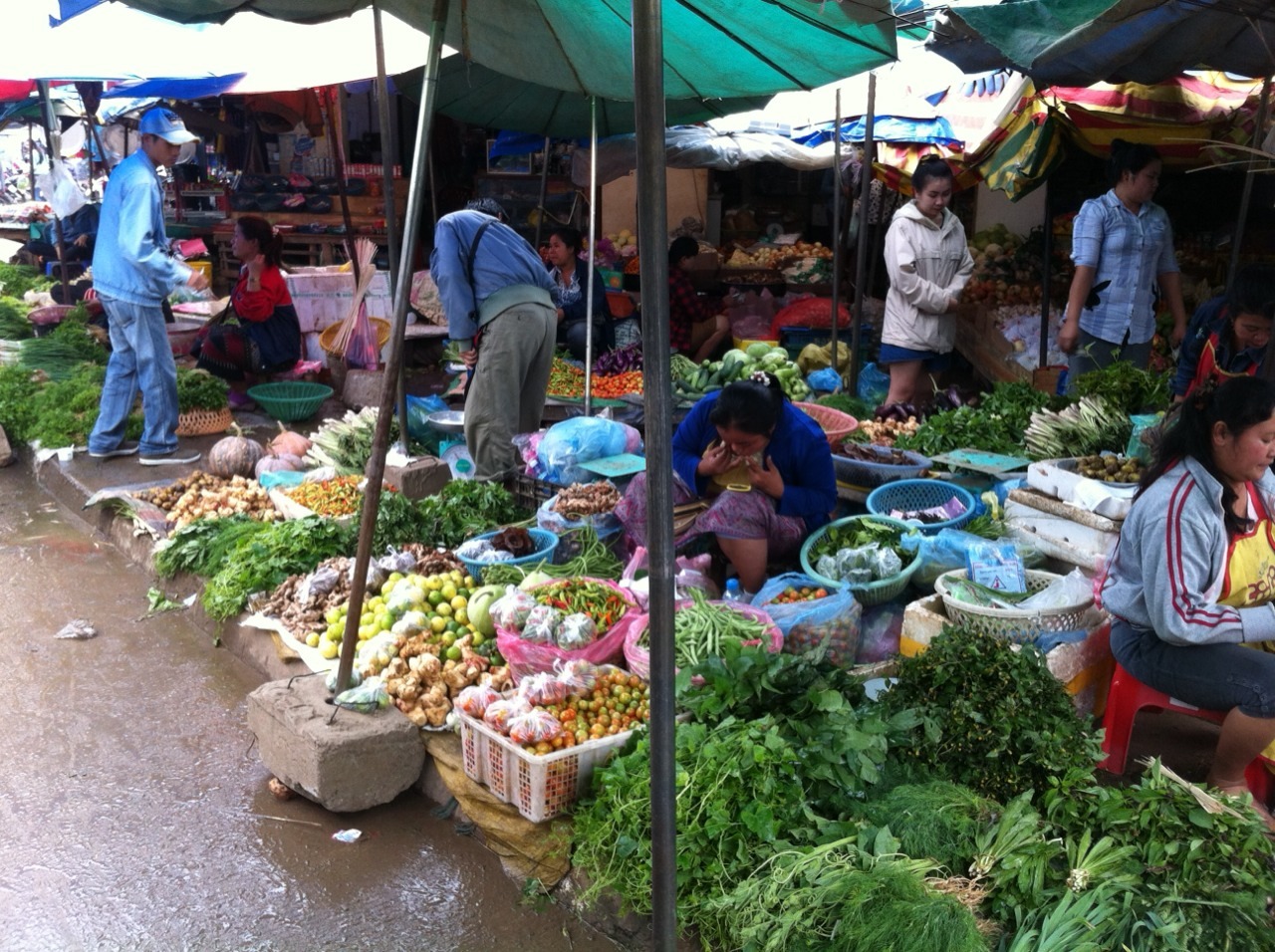 First up was a trip to the market, which was the usual South East Asian chaos, colour, and piles of meat kept in 25 degree heat. All the really weird bits of meat too – apparently, Laotians are big on their offal and blood. Very much a waste-not, want-not culinary society. Indeed, the heart is the most expensive cut of meat here, because (rather logically) it’s small and there’s only one per animal.
