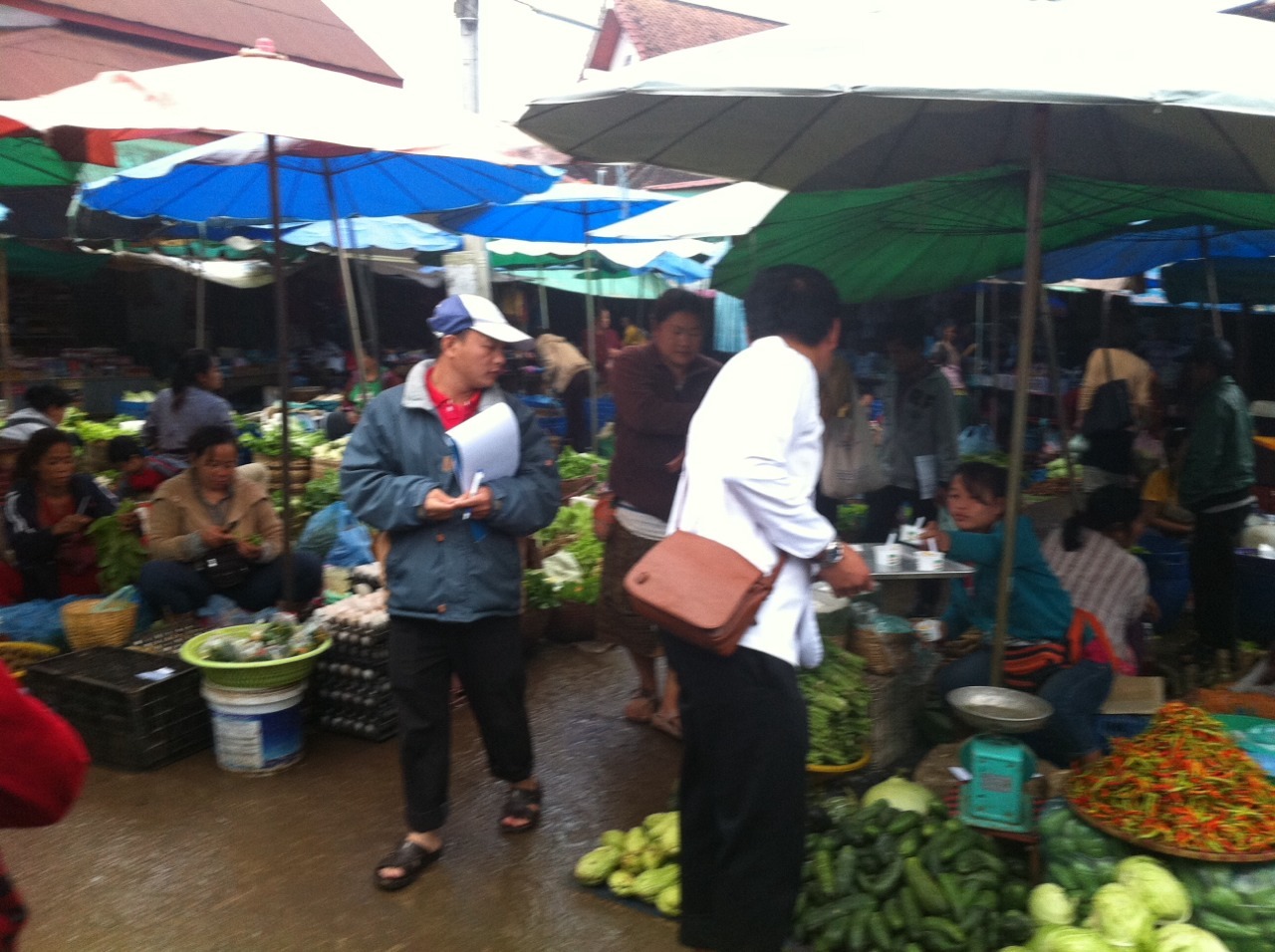 Also at the market that day, doing his bit for globalisation, was the man from Knorr, going around offering omlette and steamed rice from their instant packets. Didn’t seem to be a big hit.