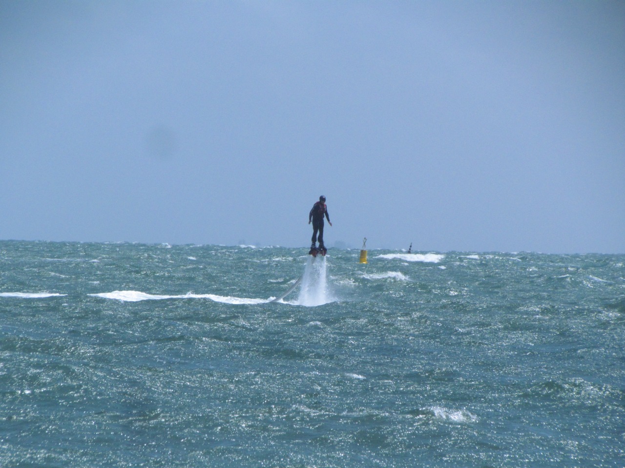 Windy, with big waves rolling in from the bay, but that didn’t stop someone from jetpacking out there. Captain Cook meanwhile was overseeing all.