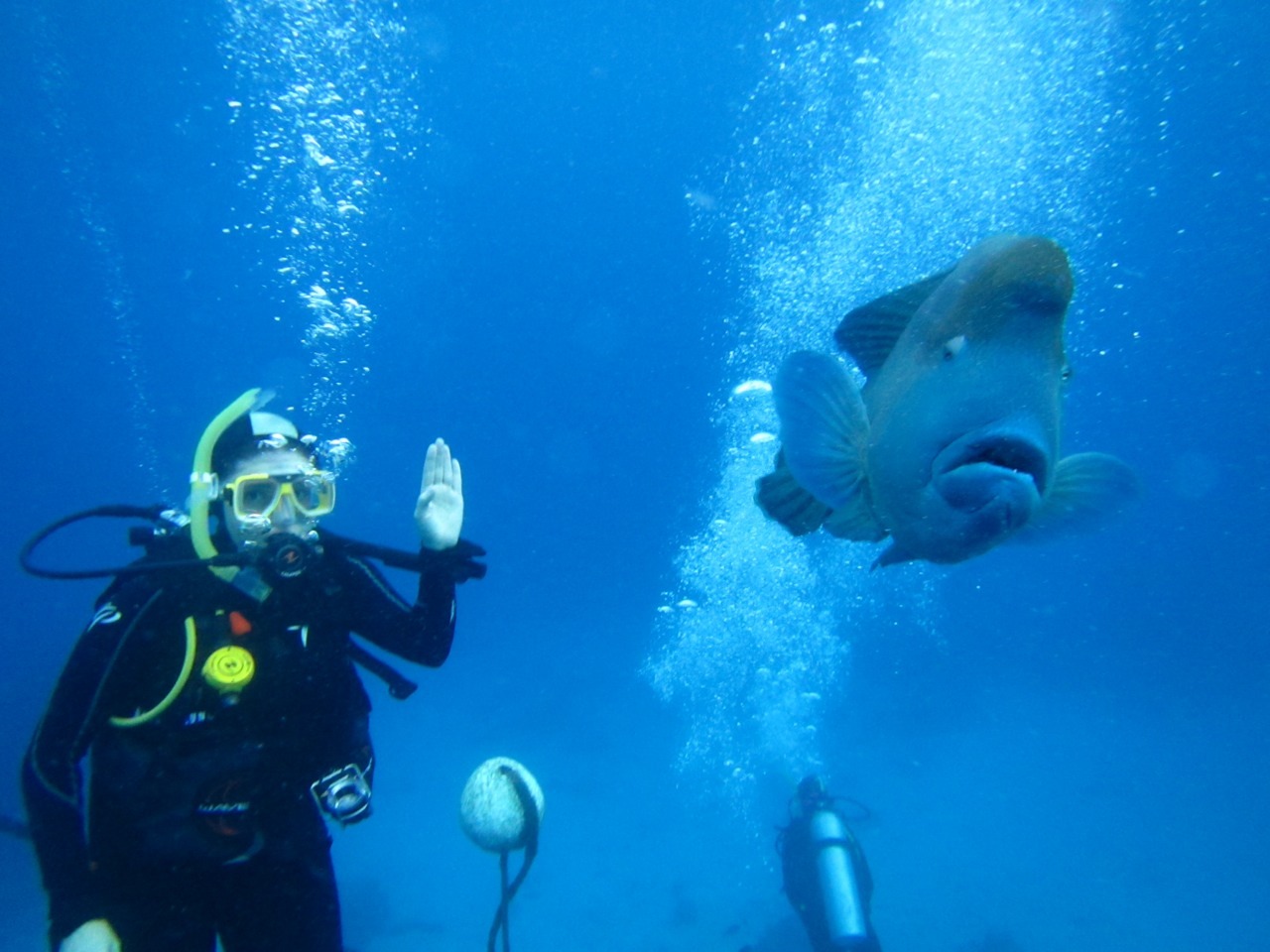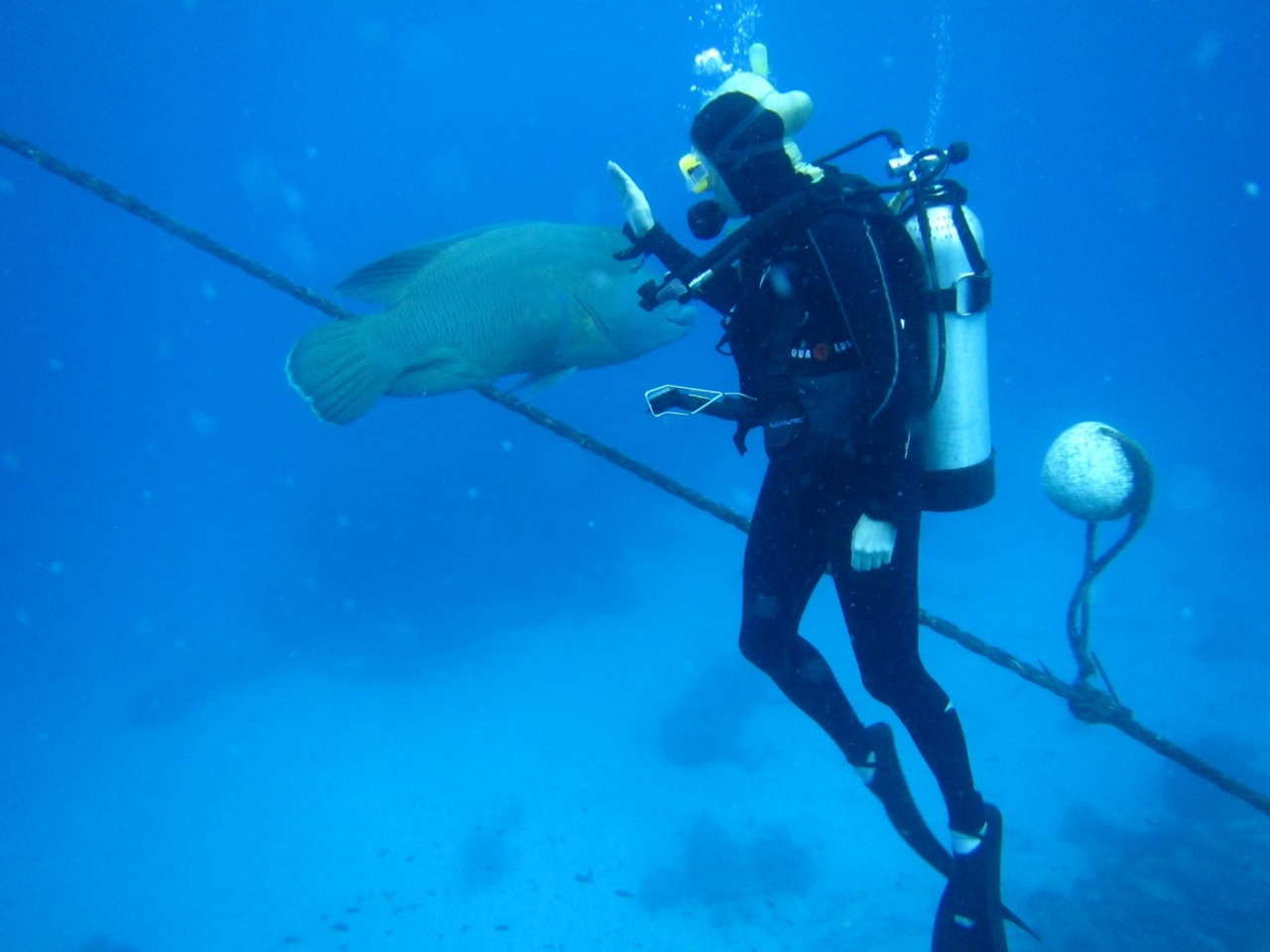 Trip 2013 A playful Maori wrasse hanging out around the mooring line of the dive boat. Australia scuba diving wildlife 0 Susan & Sam January 8, 2014
