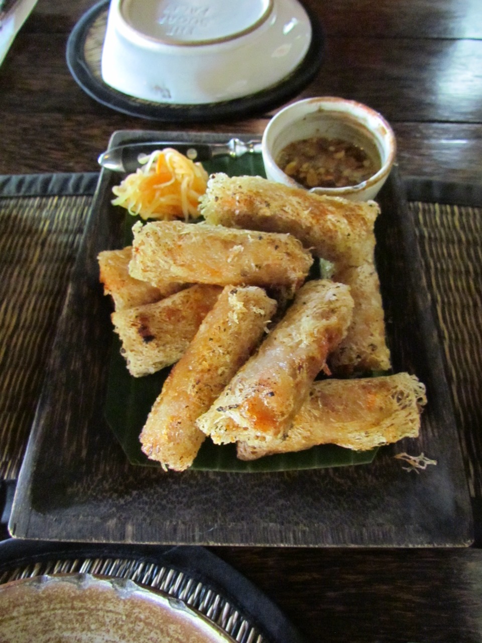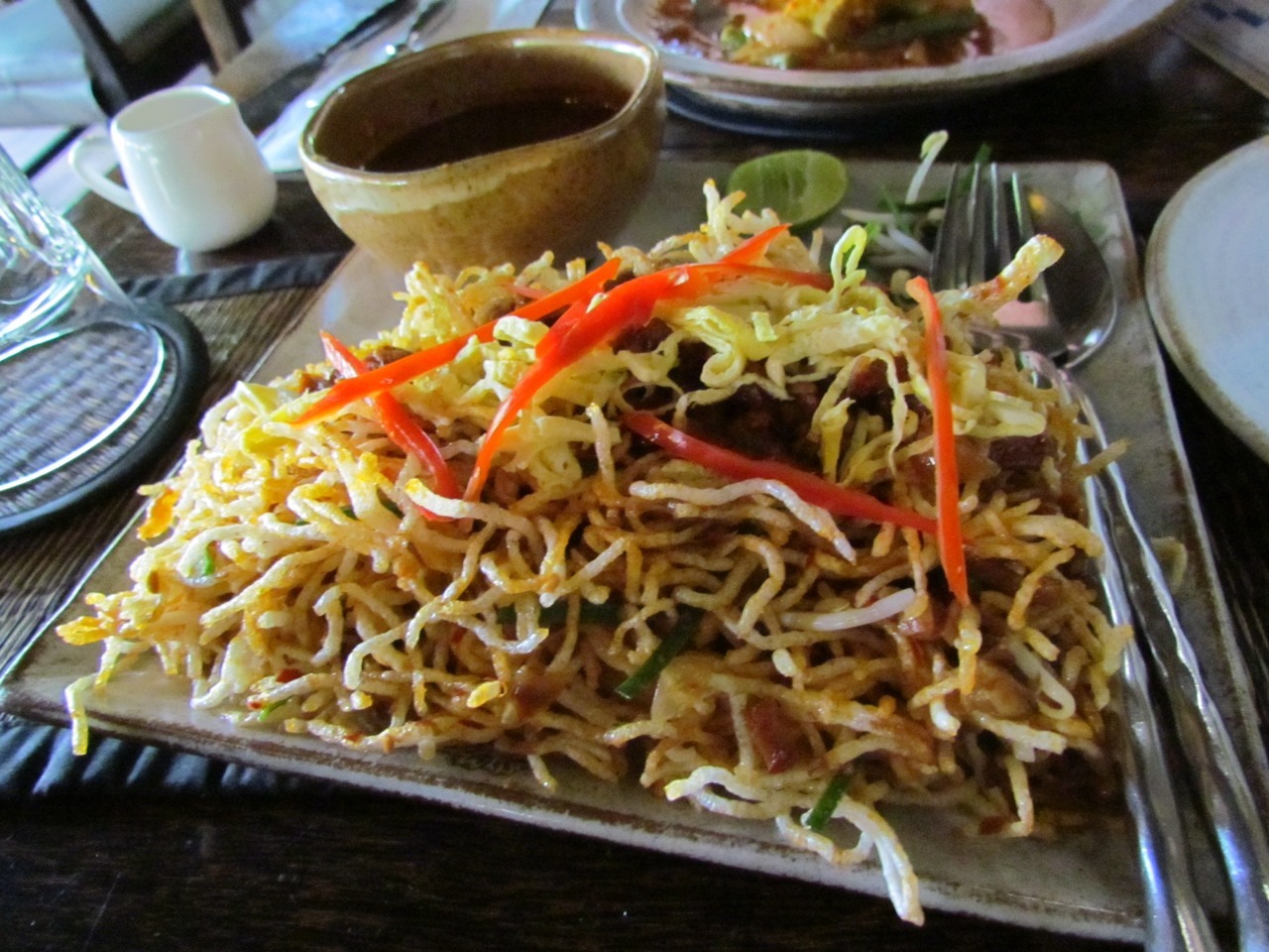 All sorts of delicious Khmer food from Siem Reap. We were very spoiled by 6-course, $15 tasting menus in a couple of excellent restaurants. There’s aspects of Vietnamese and Thai to the cuisine, with some wonderful coconut milk curries (“amok”). Lots of fresh fish and delicate herbs, lemongrass and ginger.