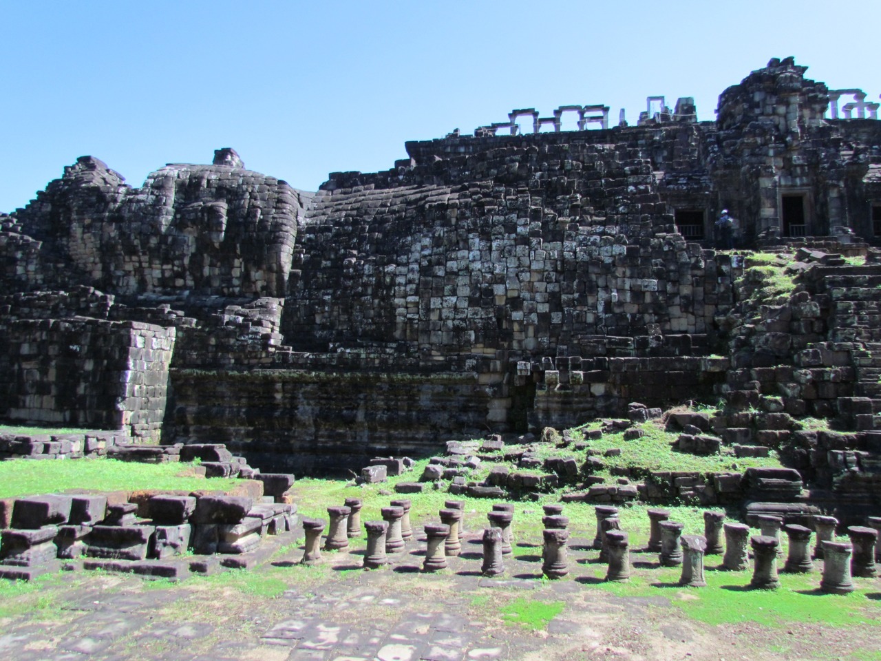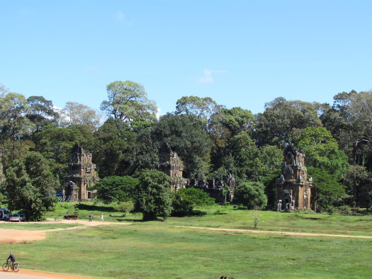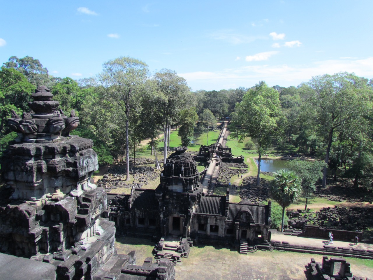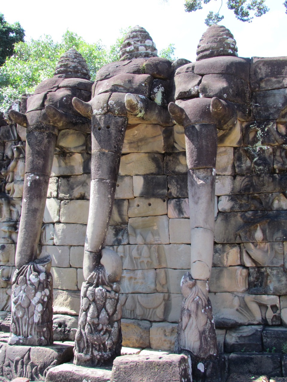 Within the walls of Angkor Thom are all sorts of other amazing monuments; above you can see pictures of Baphuon with its reclining Buddha, Phimeanakas, the Terrace of Elephants, and Prasat Suor Prat, with its series of towers that were connected with tightropes for acrobatic displays. Cirque du Khmer.