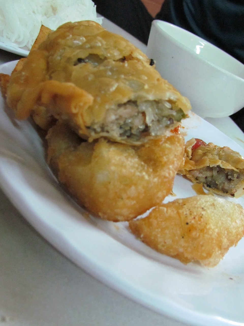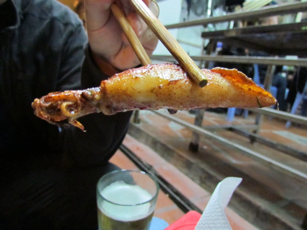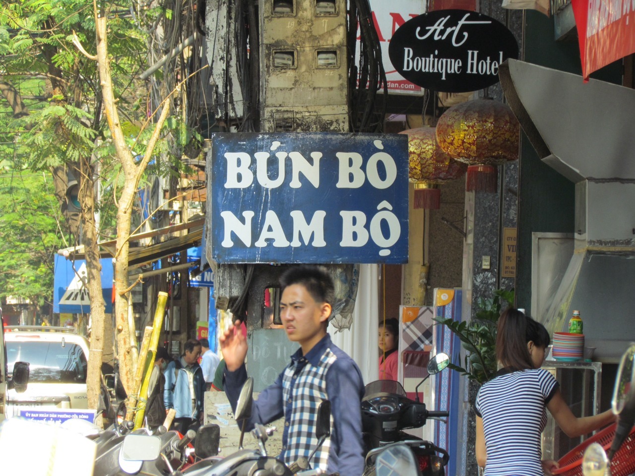 Ambiance consisted of tiny plastic stools and tables in shop fronts and on the pavement, mopeds whipping on by. No meal for more than $4 a head, with a slight additional cost in worrying whether we may have pushed the food hygiene limits too far this time.