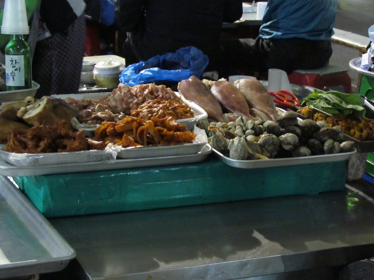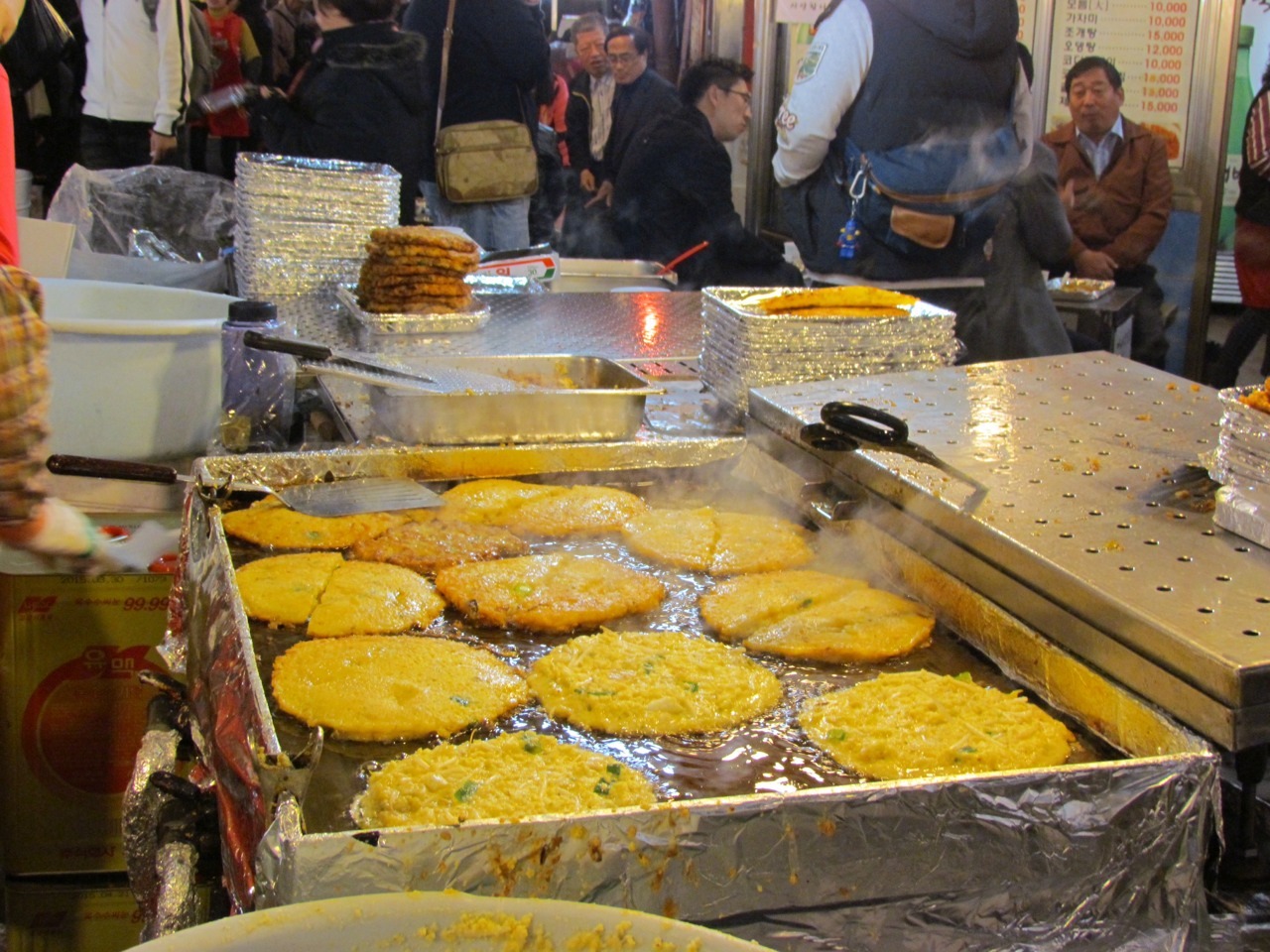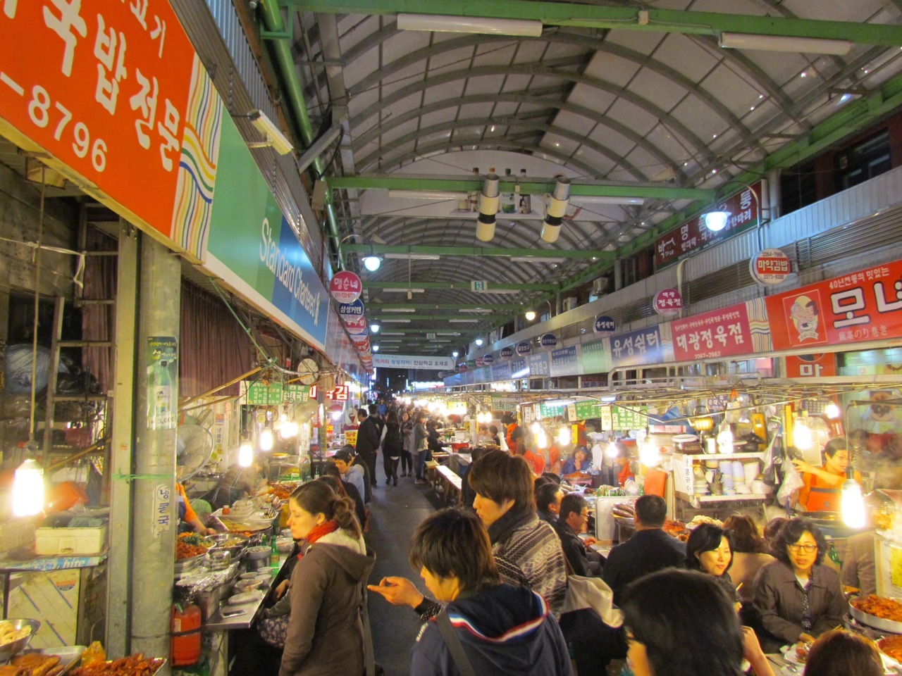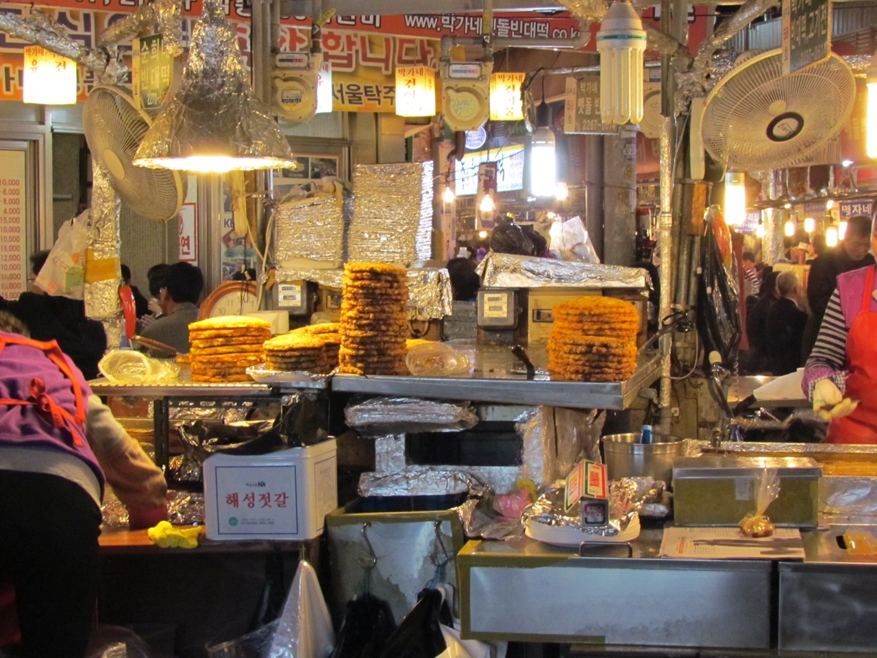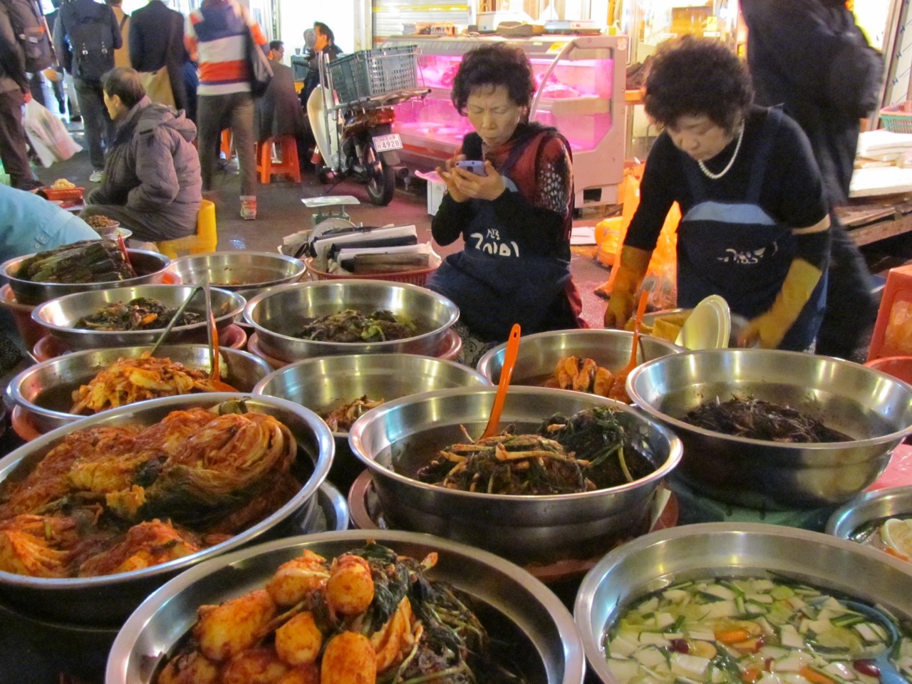 Gwangjang Market: all sorts of crazy and tasty footstuffs to be had. Kimchi features heavily, naturally enough, but pig intestines and fried mung bean pancakes are also a big hit.