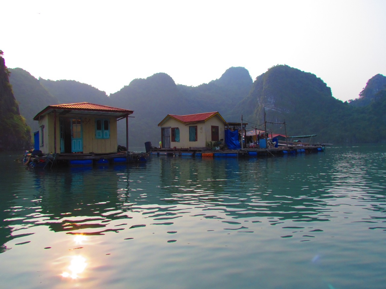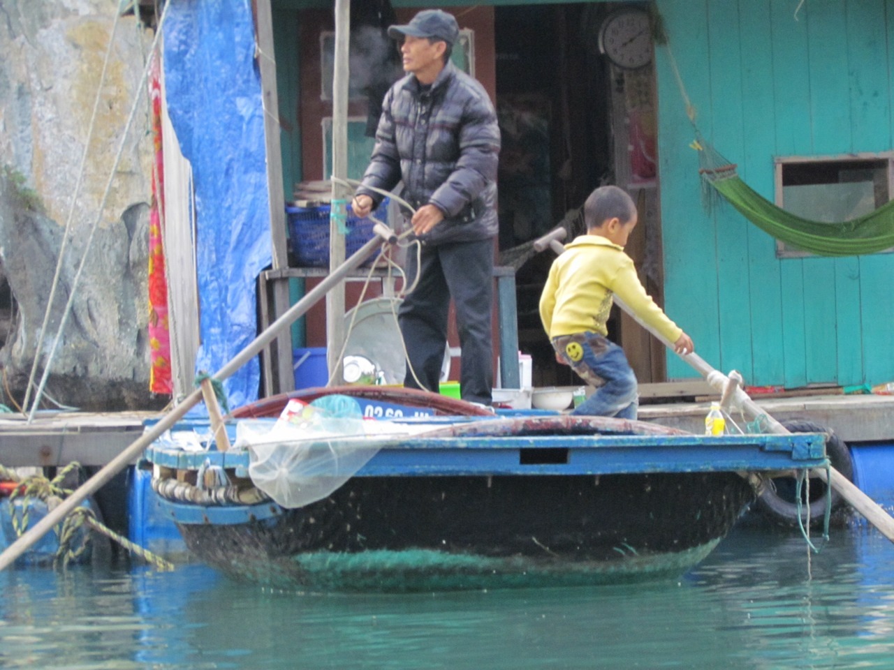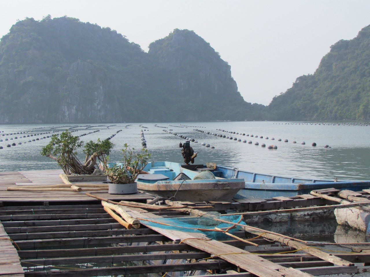 Halong Bay is home to a few floating villages. This particular one is much less atmospheric than the one we visited in Cambodia, despite its stunning karst island harbour location, but it seemed a bit more of a working village. In addition to income from tourism, the residents fish and cultivate oysters for pearls.