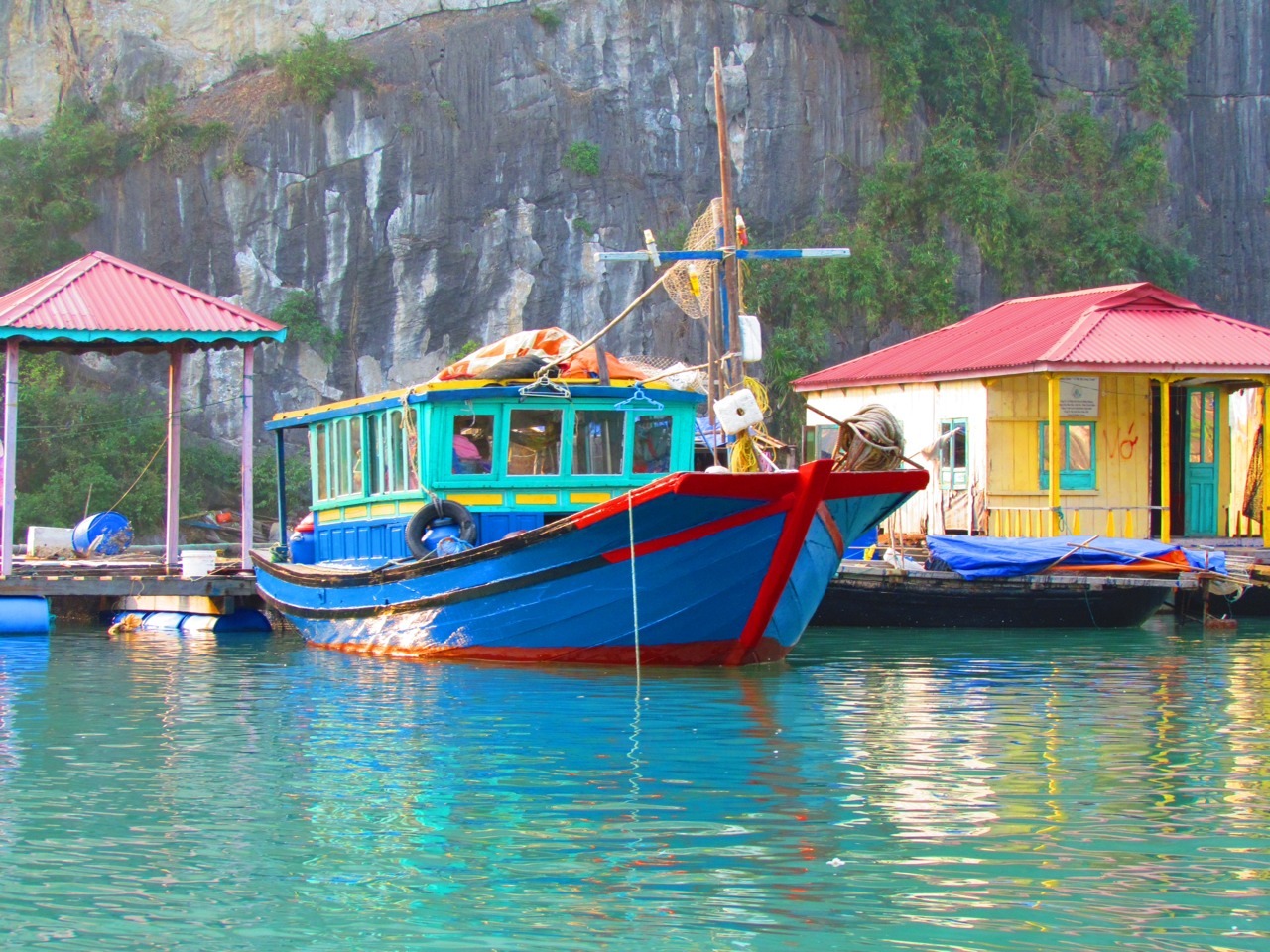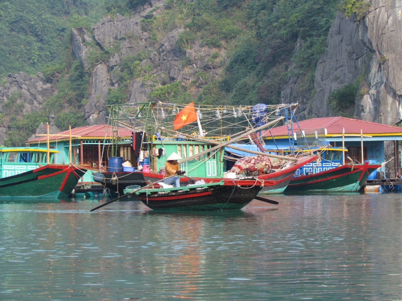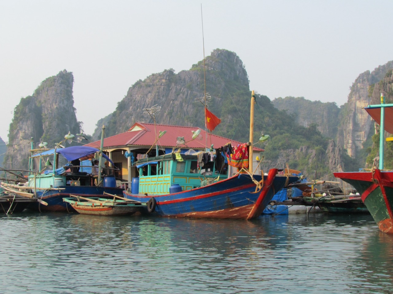 Halong Bay is home to a few floating villages. This particular one is much less atmospheric than the one we visited in Cambodia, despite its stunning karst island harbour location, but it seemed a bit more of a working village. In addition to income from tourism, the residents fish and cultivate oysters for pearls.