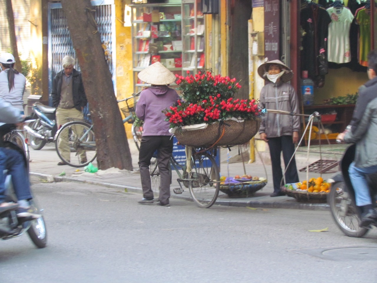 Hanoi’s Old Quarter: bicycles, motorcycles, cyclos; anything and everything for sale, all grouped together; buildings and monuments, shops and houses.