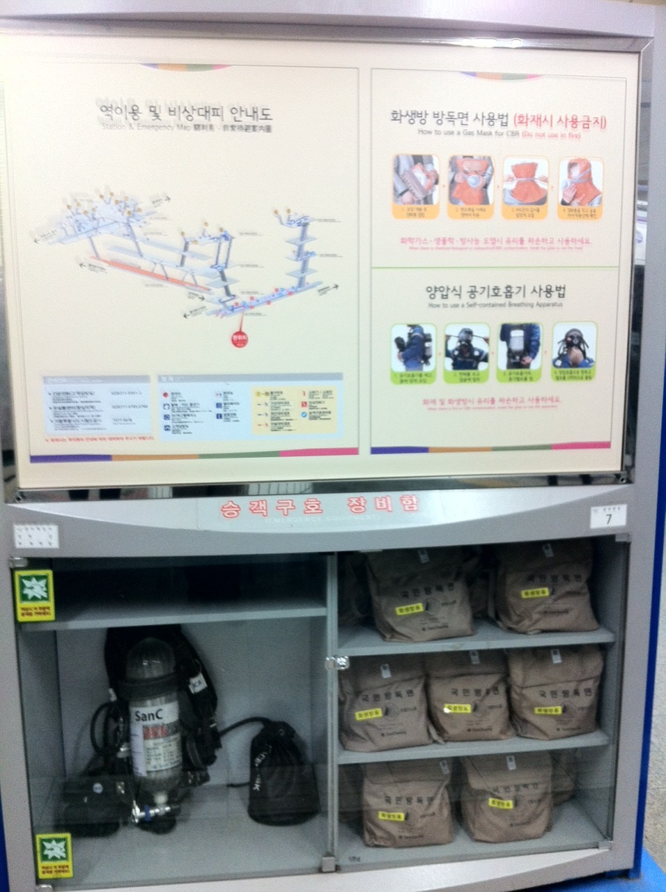 In a slightly disconcerting reminder that there’s a rather irrational and well-armed aggressor to the north of us here, the metro station has masks for use in case of chemical, biological or radiation attacks.