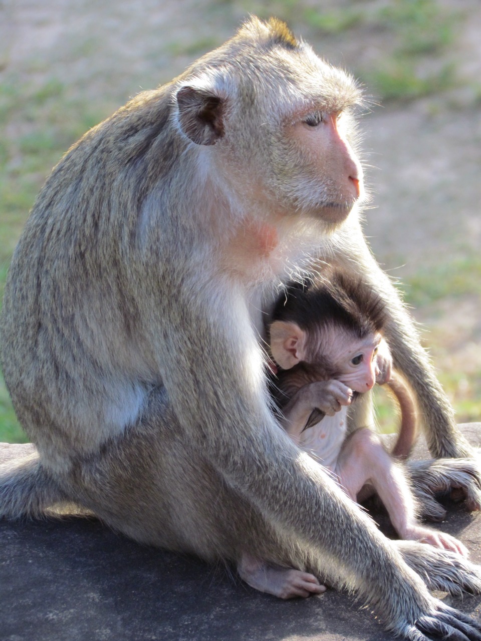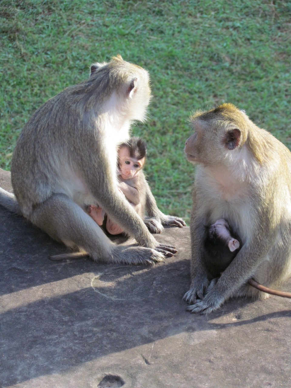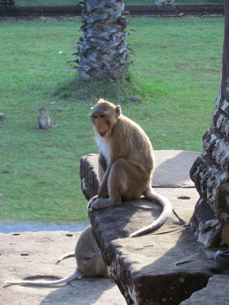 In Angkor Wat’s grounds we came across a pack of monkeys, hanging out in the cool of the early morning. There were two very young babies (one rocking a super cool mohawk) with their mothers, and a few rapscallion teenager types, who gleefully chased after tourists while the mothers looked on in an unimpressed fashion.
