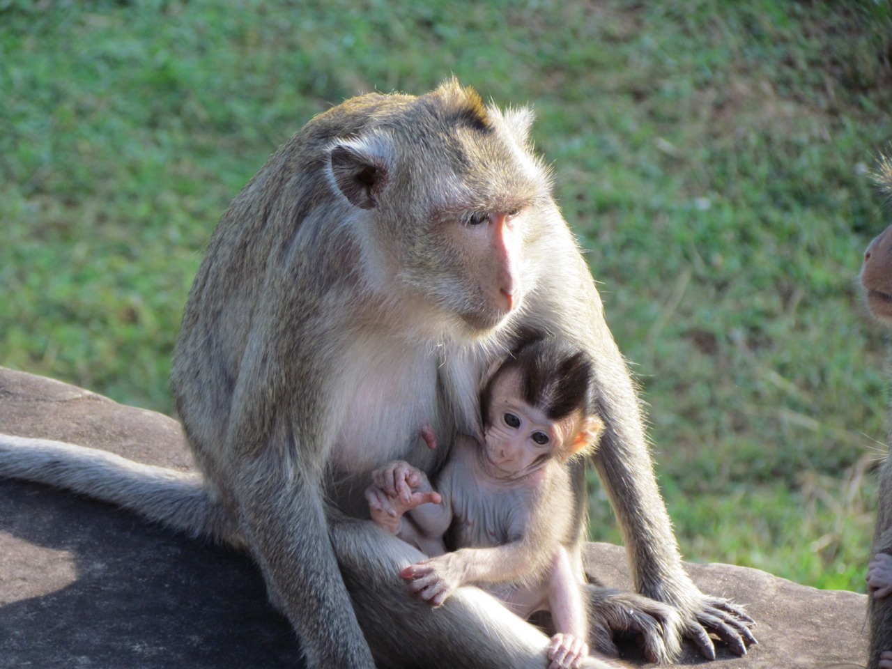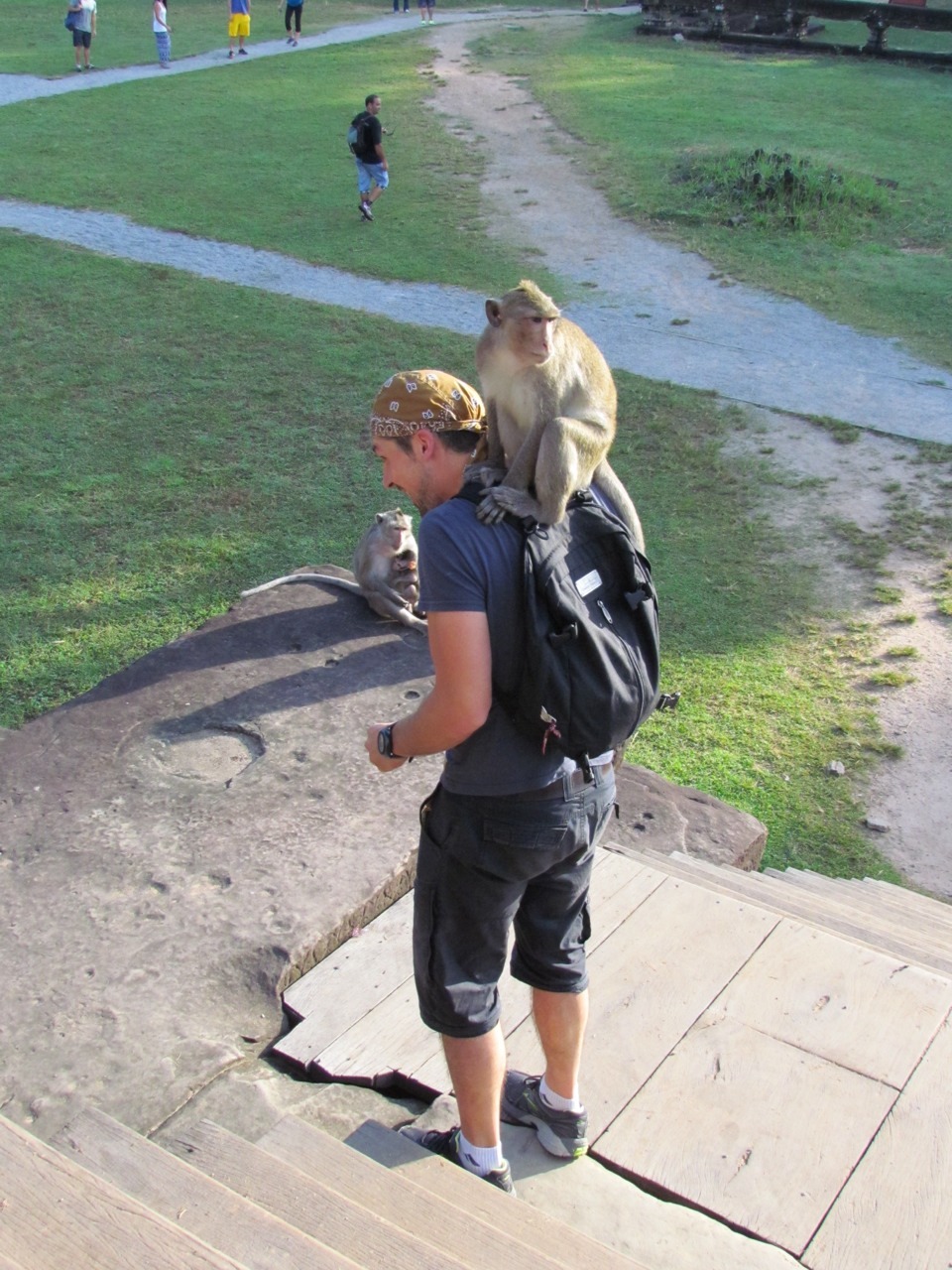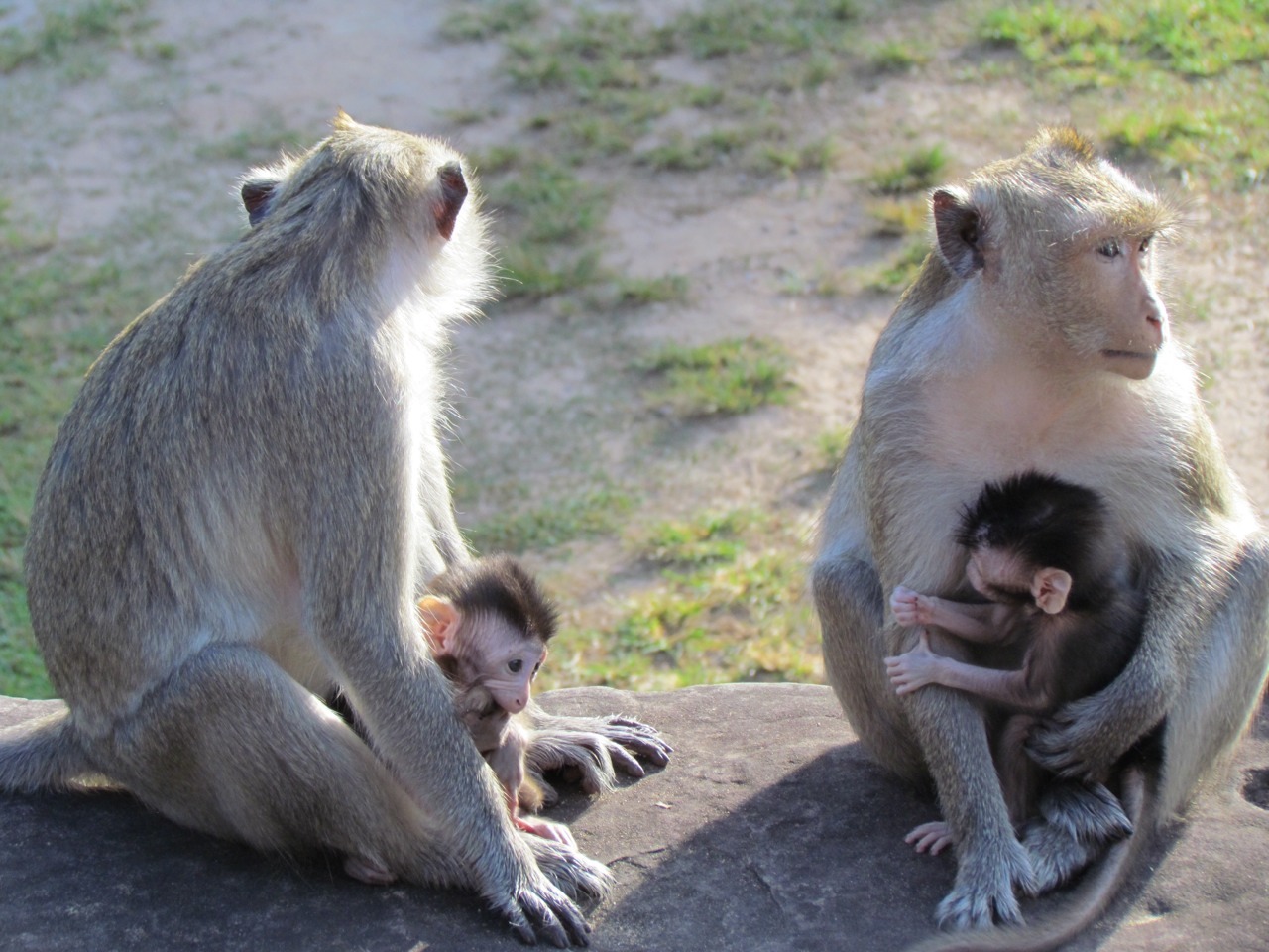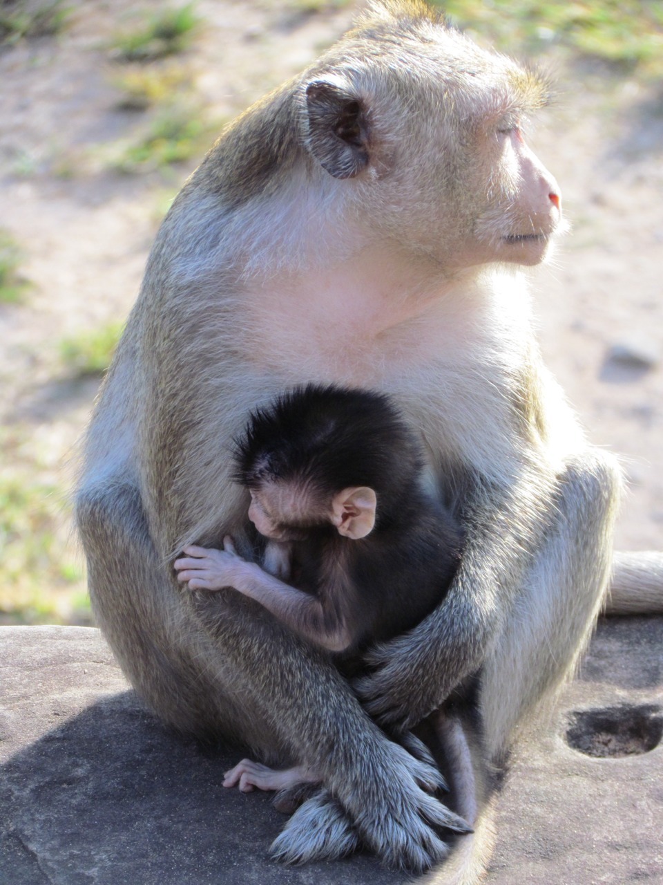 In Angkor Wat’s grounds we came across a pack of monkeys, hanging out in the cool of the early morning. There were two very young babies (one rocking a super cool mohawk) with their mothers, and a few rapscallion teenager types, who gleefully chased after tourists while the mothers looked on in an unimpressed fashion.