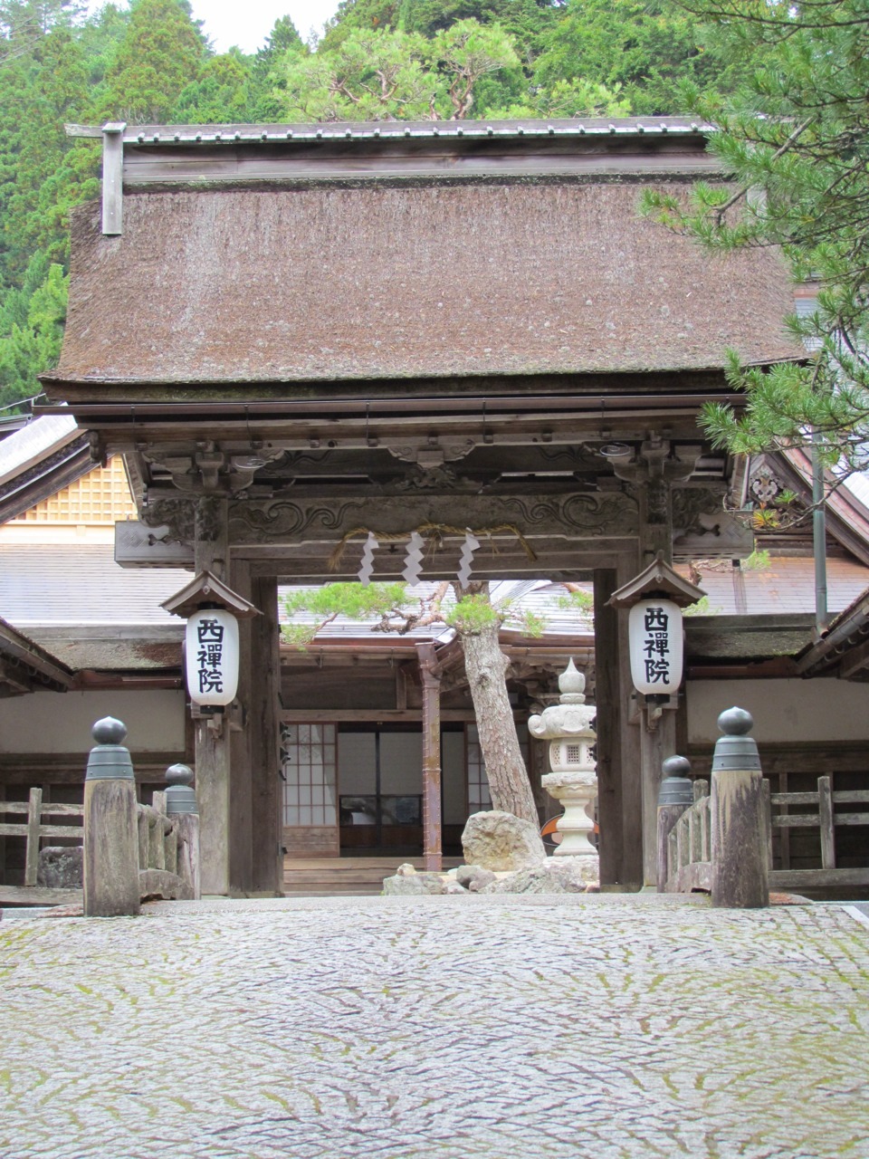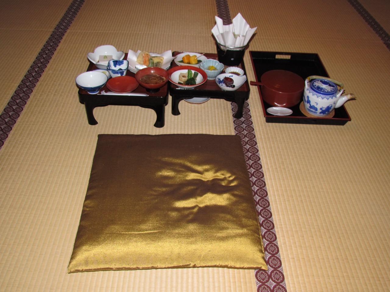 In Koyasan, the done thing is to stay in shukubo, or temple lodgings. We stayed in one called Saizen-in and enjoyed a Shojin Ryori dinner (Buddhist vegetarian meal). There were many different kinds of tofu, most of them delicious. Our room itself was actually three separate rooms, separated by sliding doors — a sitting room, a dining room, and a sleeping room.