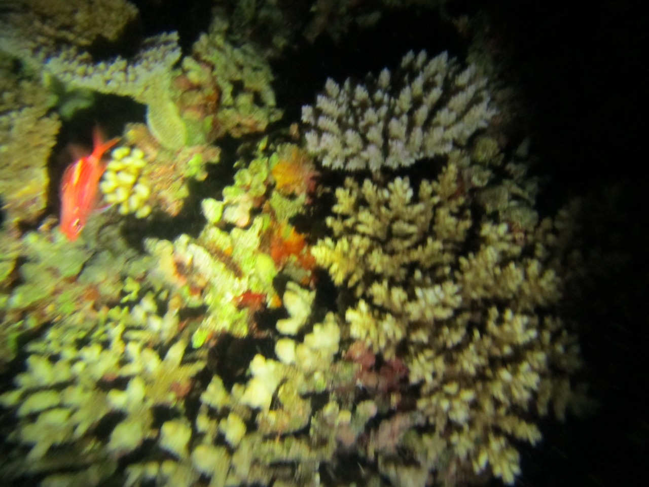 We took the camera for that one and learned that underwater photography at night is…stupidly hard! Still, here’s the blurry best of a bad bunch. Swear to God that somewhere in the last one is the (not at all aggressive) reef shark that was circling the boat as we first descended. Its eyes glowed like a cat’s once you moved the torch away.