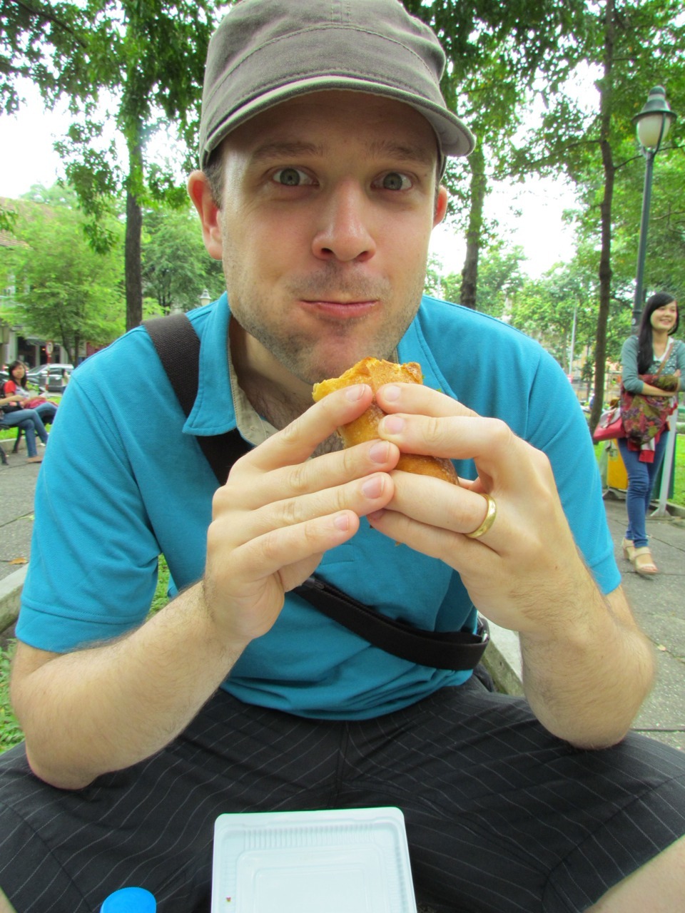 Ok, so. You’re in Vietnam, you’ve got to have a banh mi sandwich, no question. But it’s also 32 degrees from dawn until dusk, and those street carts do *not* look like they have any kind of refrigeration. And while I like to fancy myself an adventurous eater, I restrict myself to the tofu banh mi in Chinatown in Toronto (air conditioned, health inspected, etc.) out of concern for the provenance of the meat. Am I really going to eat one where the meat has been sitting out in the streets of Saigon all day?
