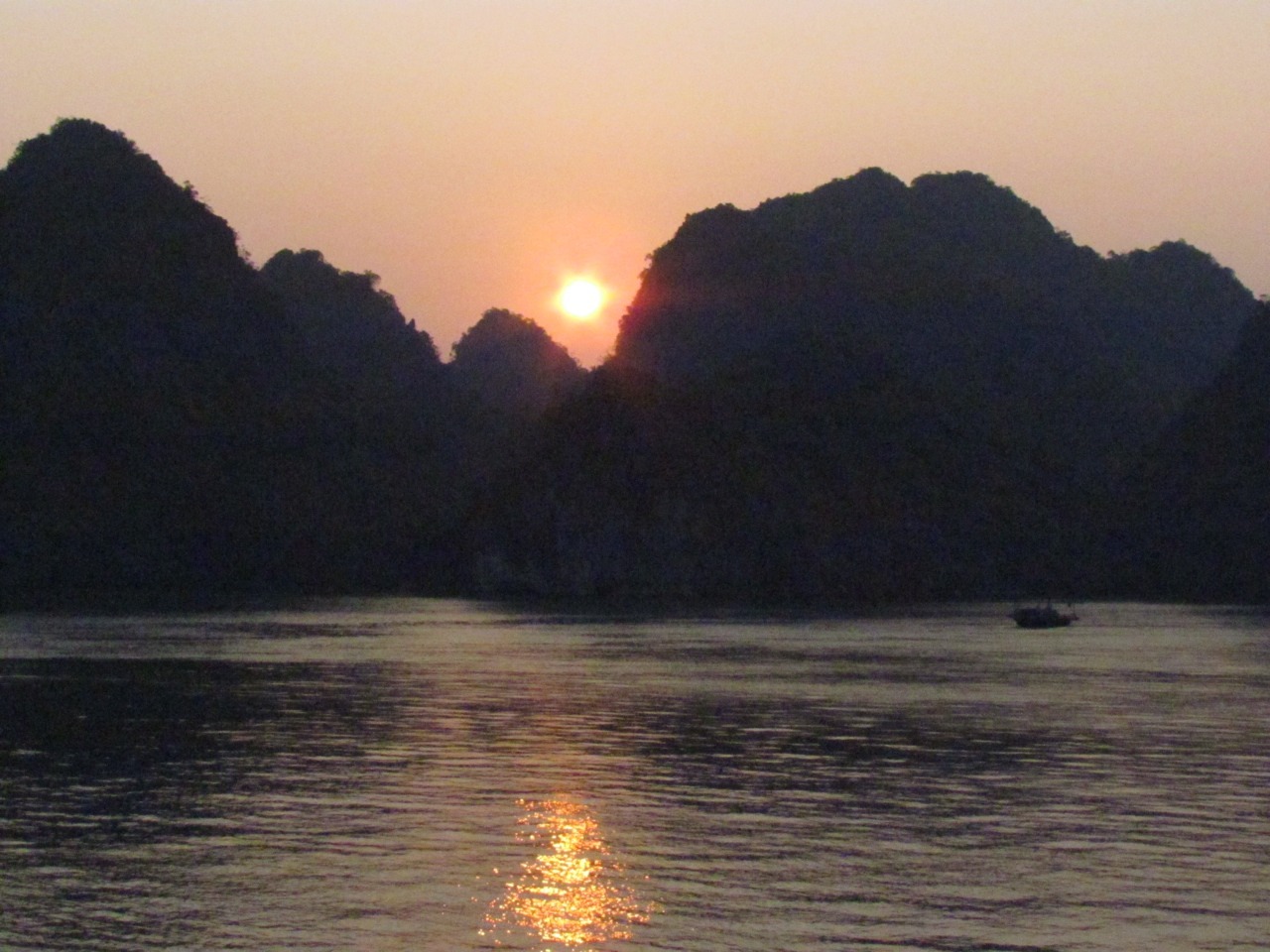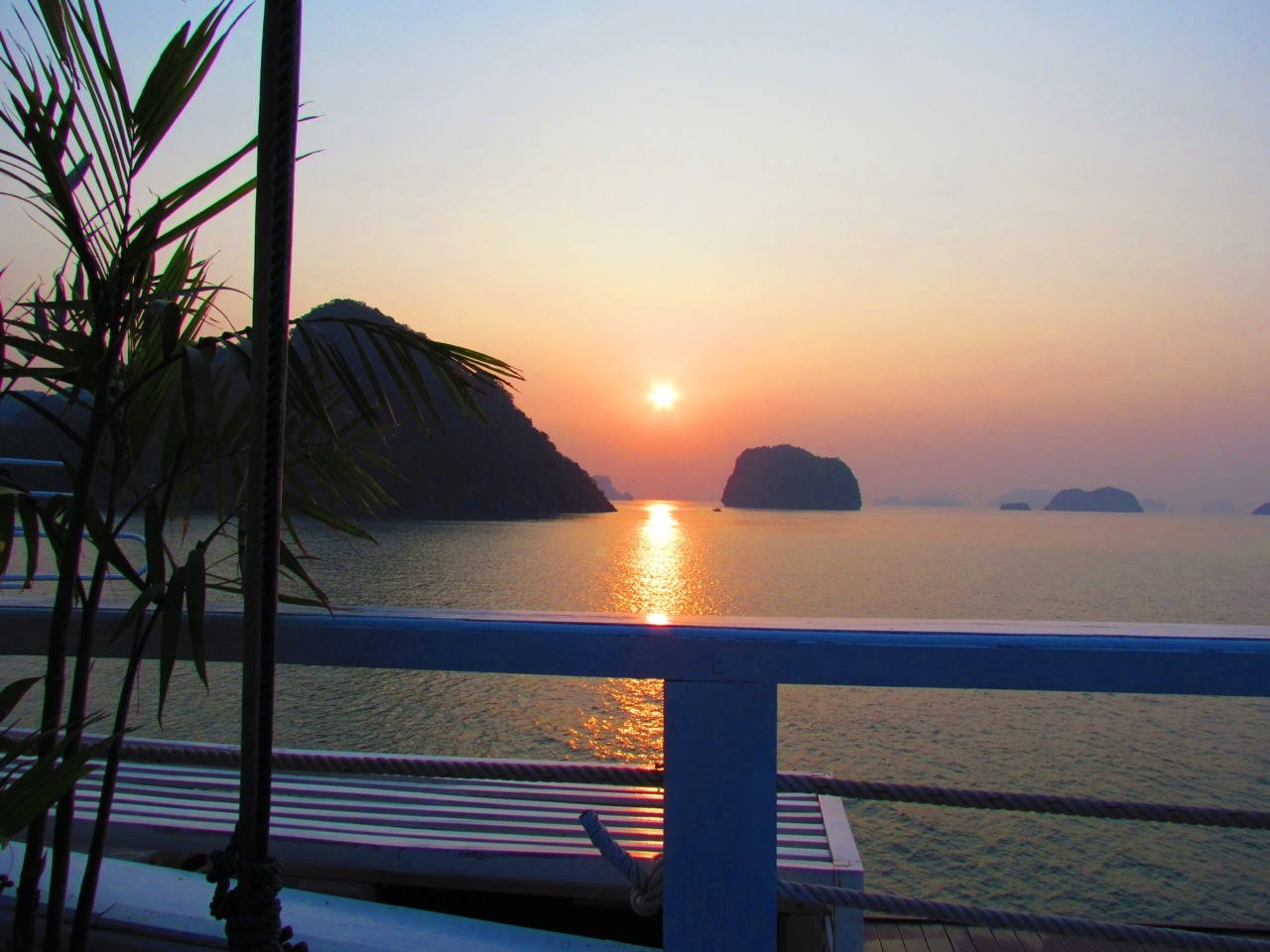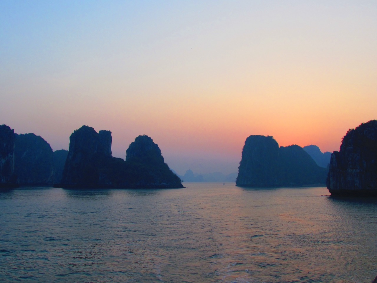 Sunset and sunrise in Halong Bay