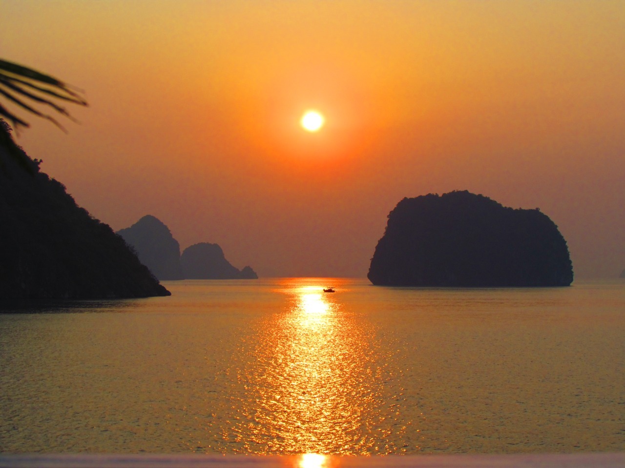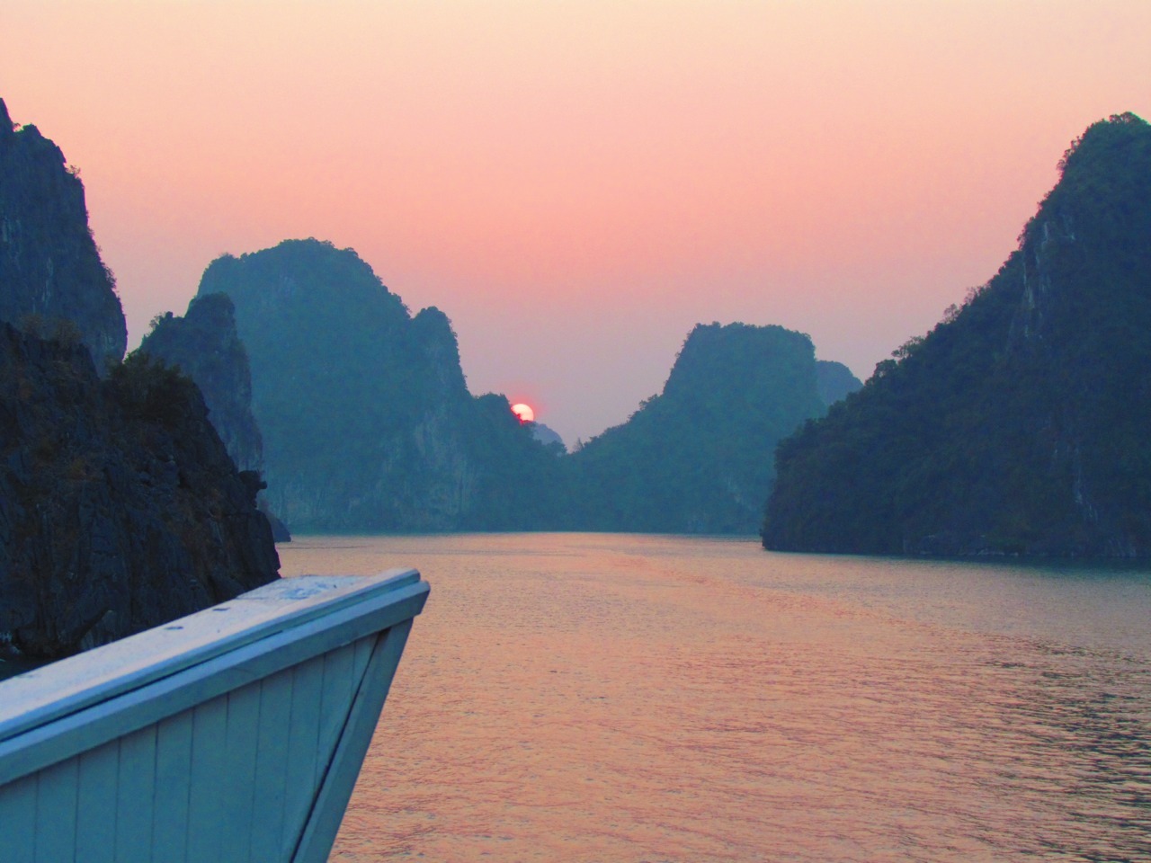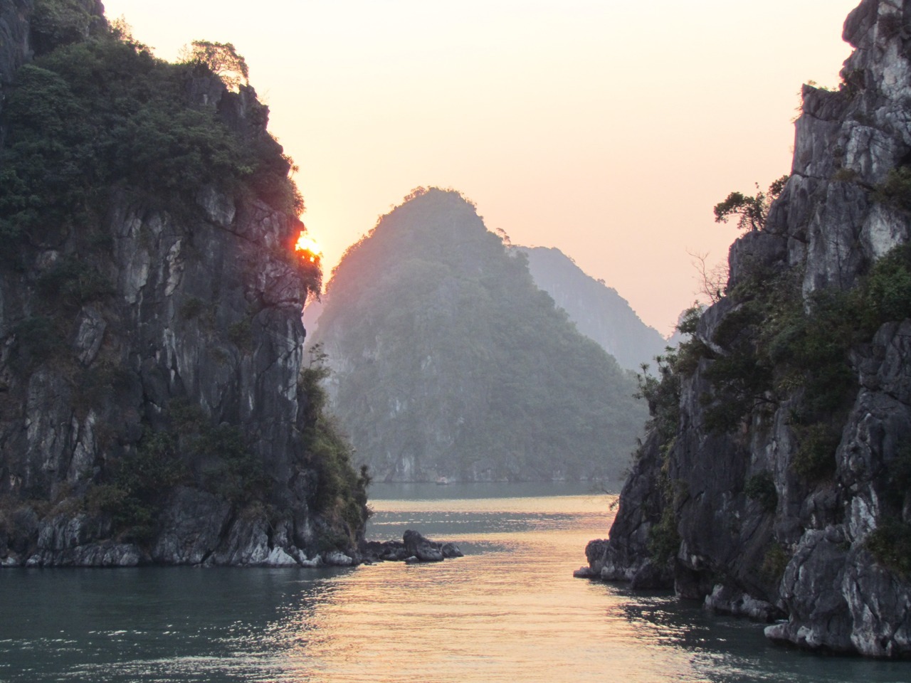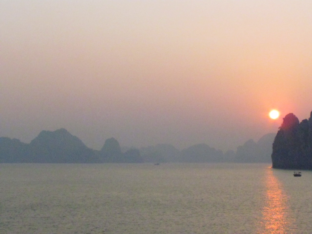 Sunset and sunrise in Halong Bay