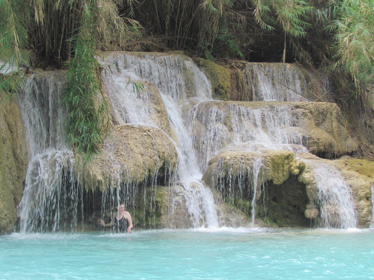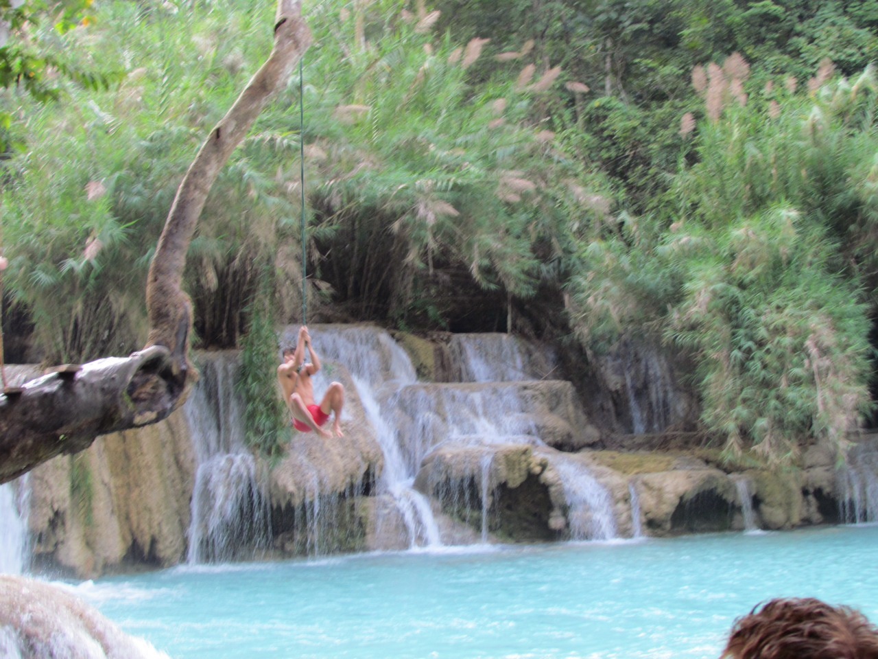 The destination for our motorcycle excursion was the Kuang Si waterfalls and a bear sanctuary. Kuang Si was rather more swimmable than Tat Se, and came with a pretty awesome, and very popular, rope swing.