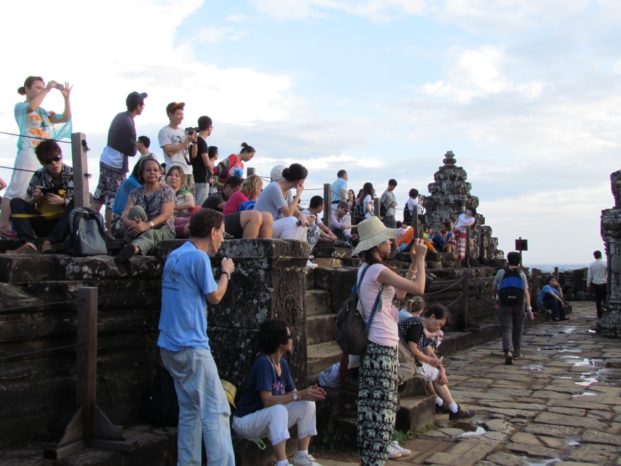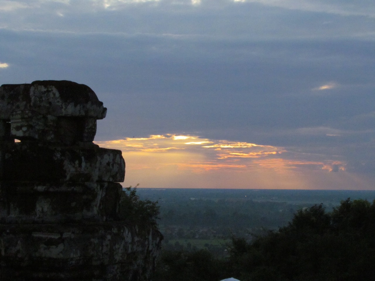 The last thing we did before heading off to the airport at Seam Reap was head up to Phnom Bakheng to watch the sunset. It was another one of those “must do”Angkor experiences, which means it was too crowded to enjoy properly. But there had been a rain storm just previously, so we got some very dramatic skies, even if the actual sunset itself was a bit of a cloudy anti-climax.