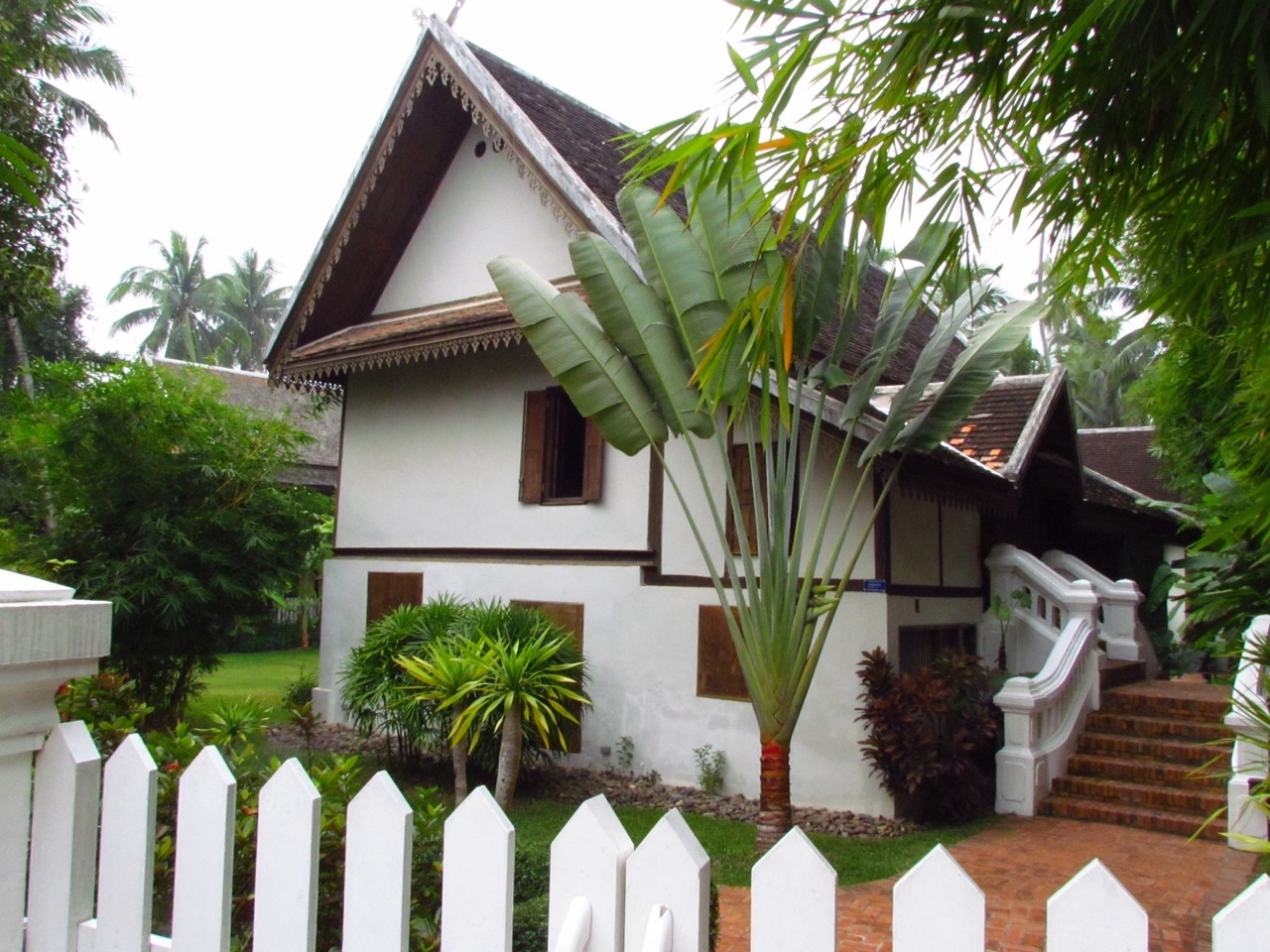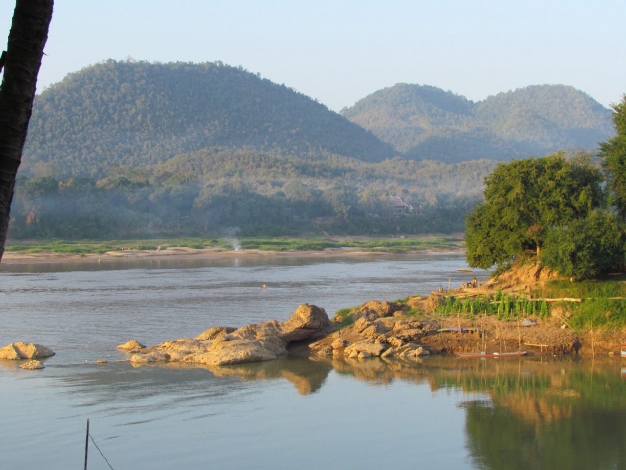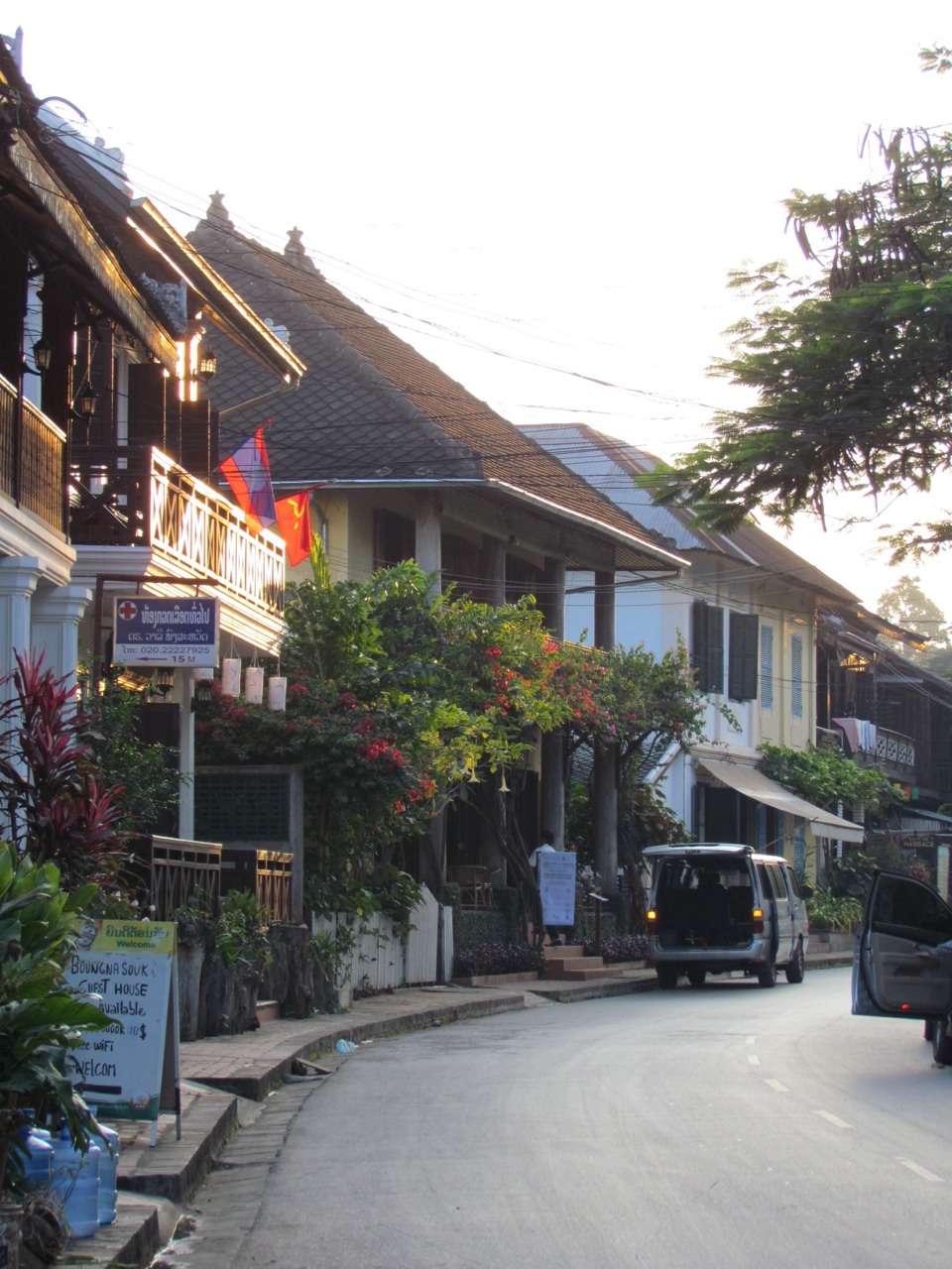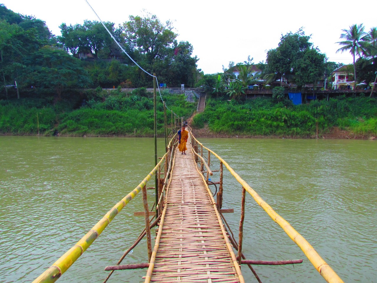 The Luang Prabang old town. Note the terrifyingly rickety bamboo bridge