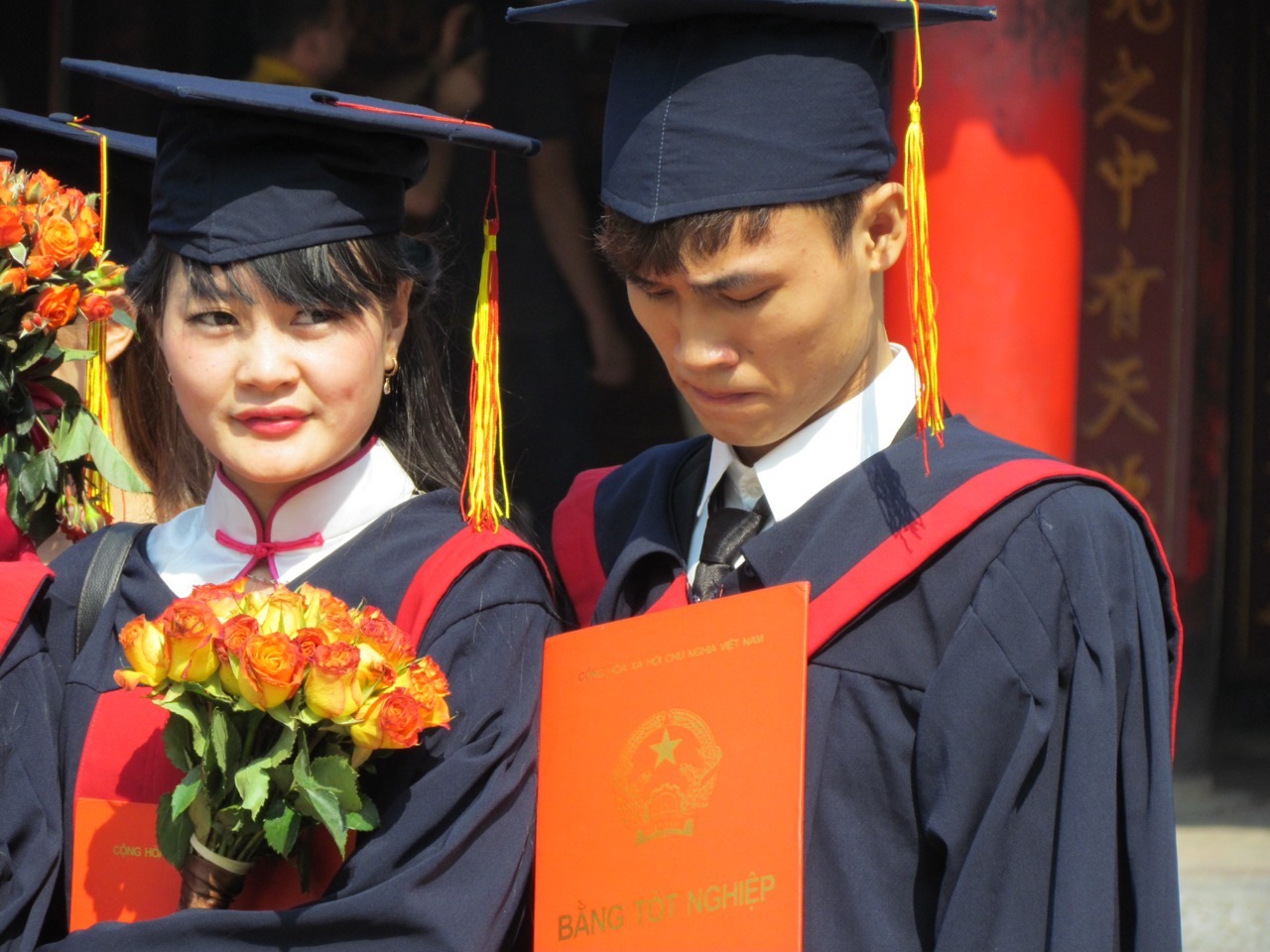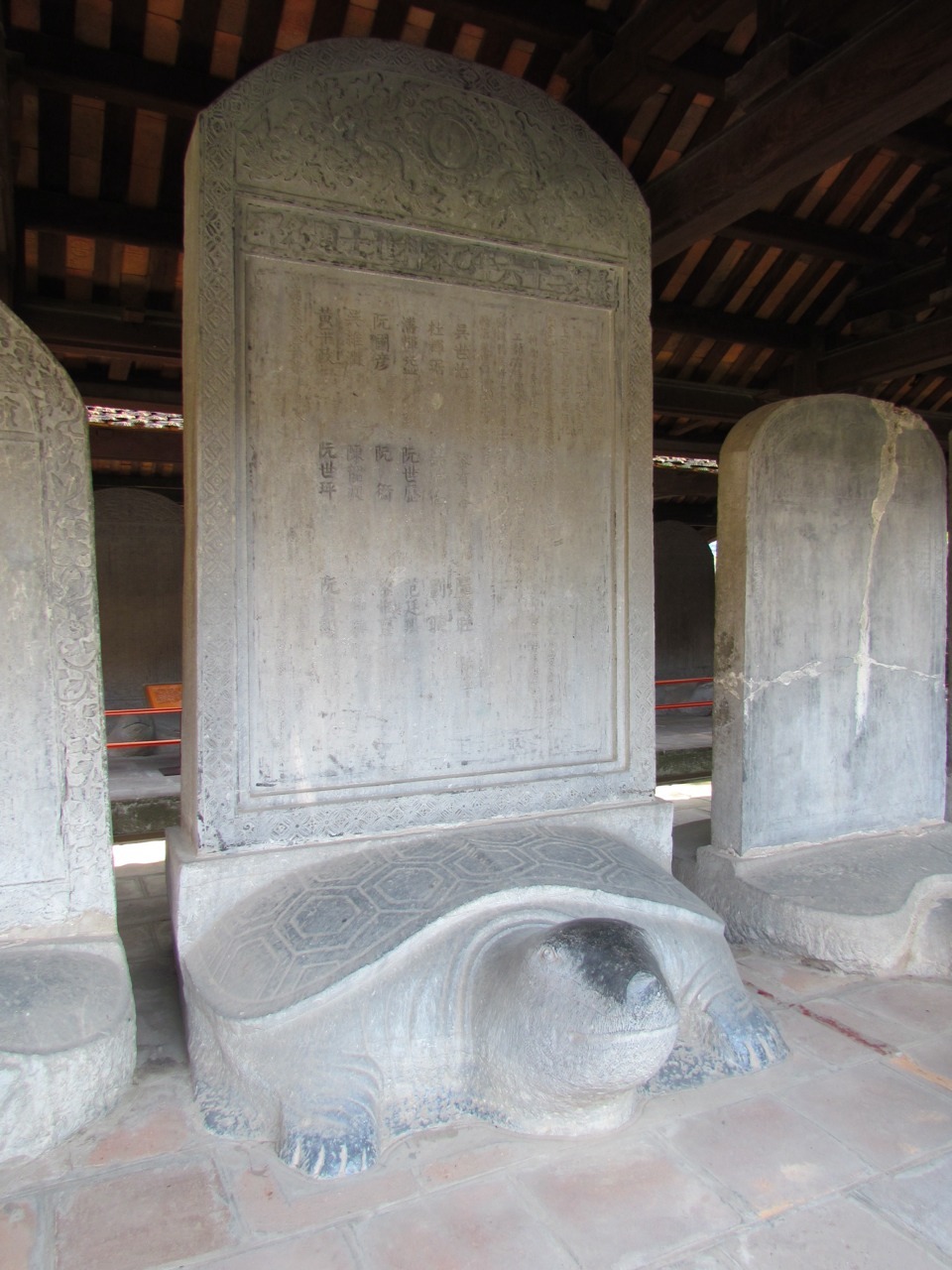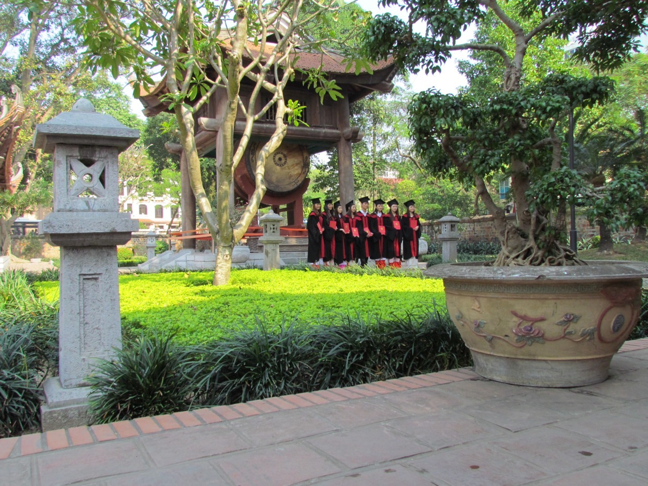 The Temple of Literature was once the centre of Confucian learning and philosophy in Vietnam, and the names of graduates were engraved on [large turtle stones] for posterity. It is still very much an active temple today, with people making offerings, and new graduates coming to celebrate their convocation.