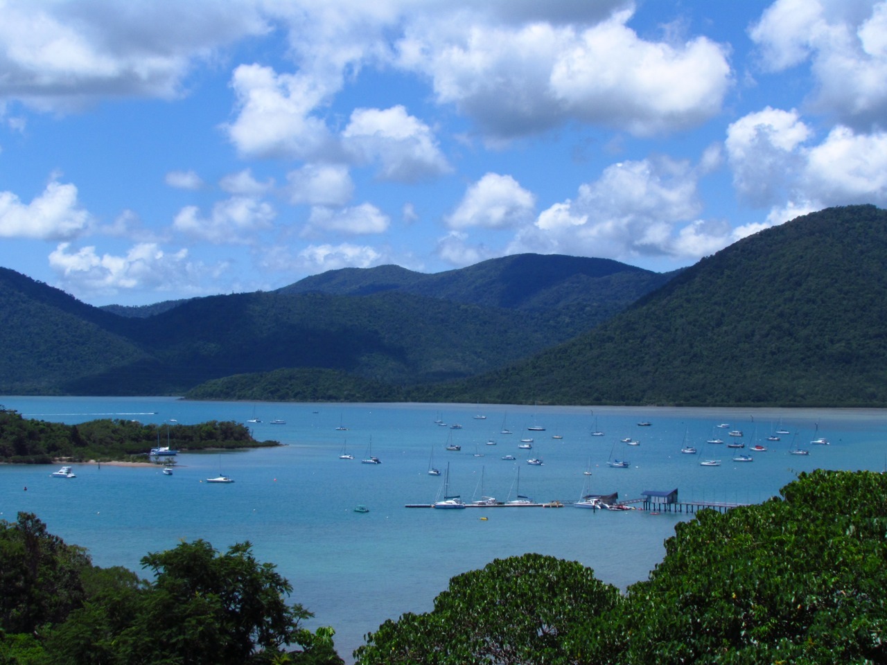 The truth is, we’ve reached the point in the trip where we have sort of…stopped planning. So it was that we turned up in Airlie Beach, the jumping off point for the Whitsundays, and were unable to get on a boat tour for love nor money. So all we have are some lovely views taken from the coastline.