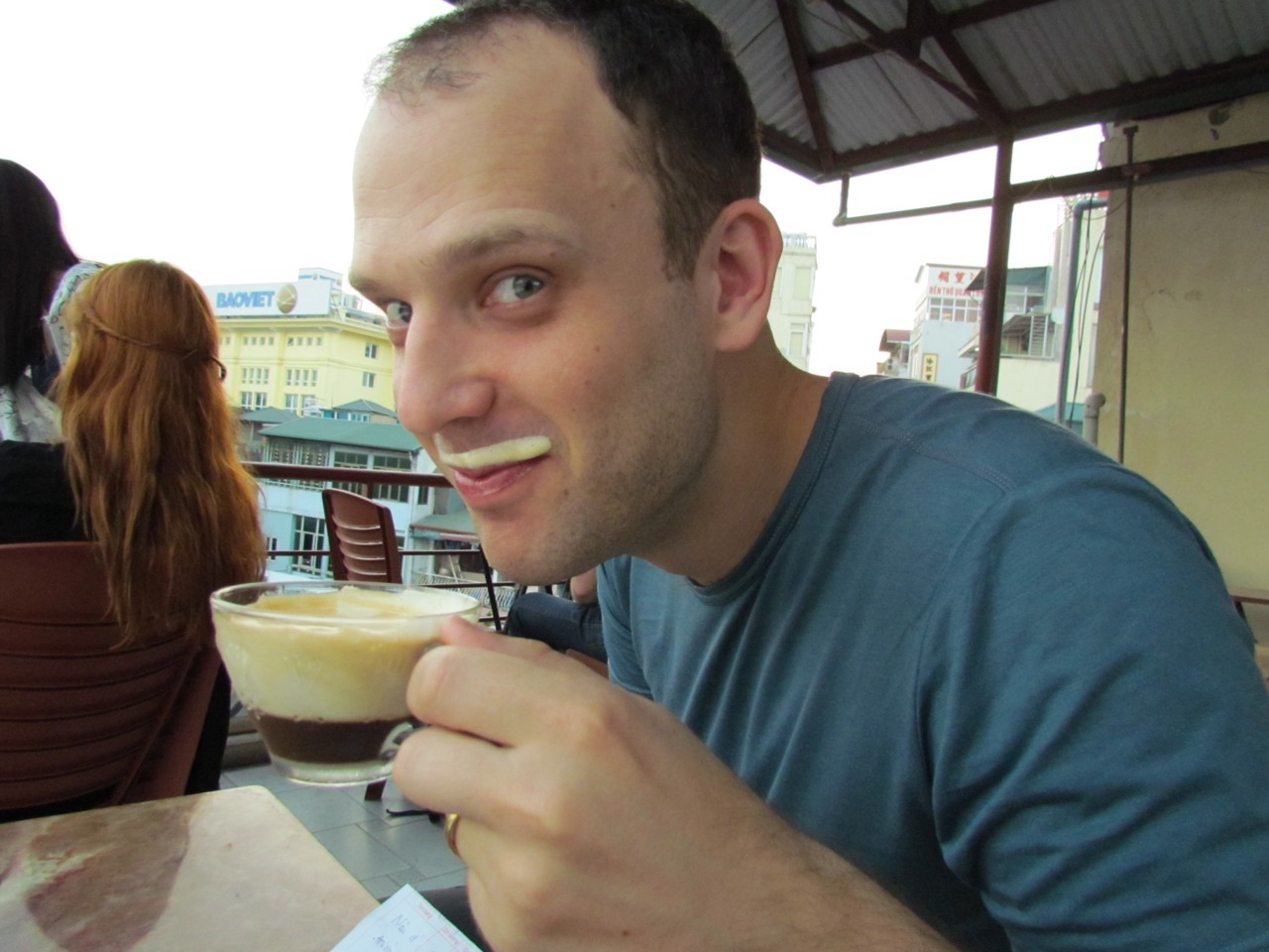 There was no special exploration required to find this café, because it’s, uh, listed in Lonely Planet. But it is through a clothing shop, across a courtyard, up two flights of stairs, and has fabulous views out over Hanoi. They also put egg whites in their coffee, which is delicious, and good for moustache-making.