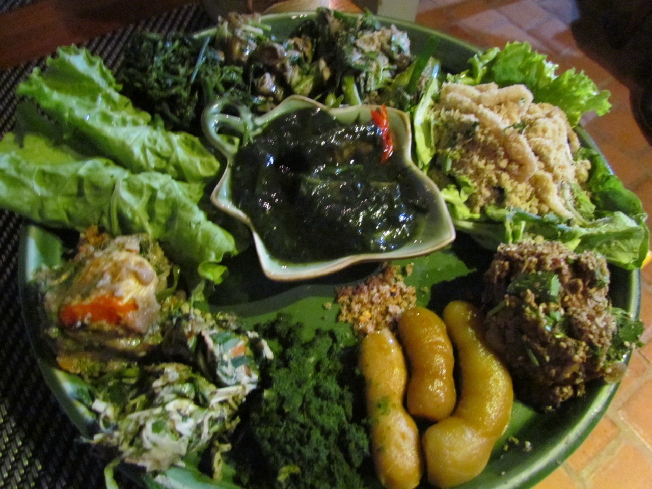 We possibly should have read between the lines more, because what we ended up with was a platter of dung beetles, rice grubs, and super fiery chili pastes.