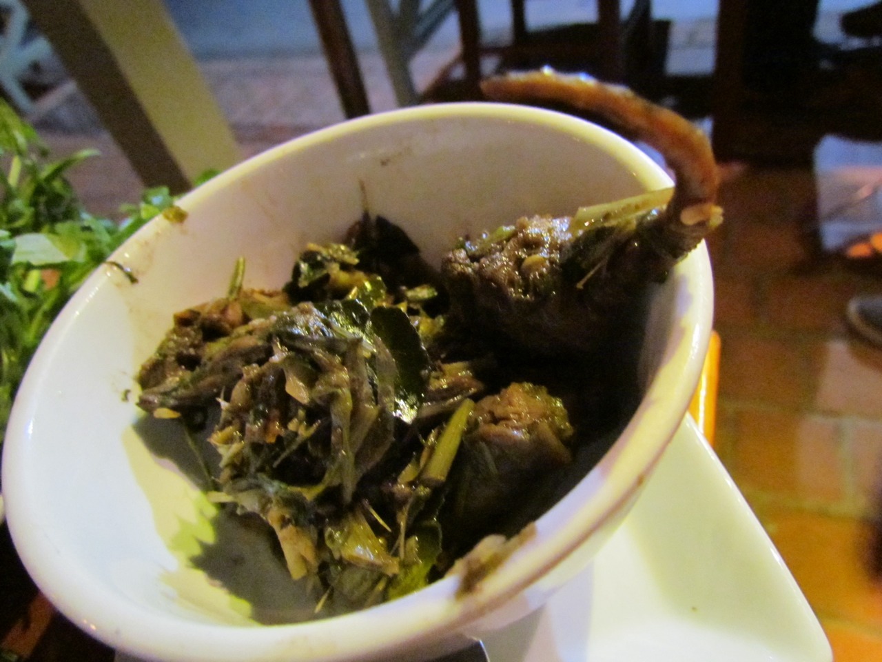 Still, there was also a rather good smoked aubergine dip, an interesting barbecued stuffed frog, and great sweet pickled tamarind. And the cocktail was excellent.