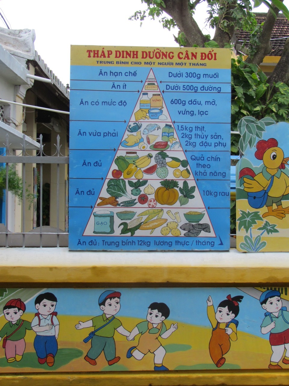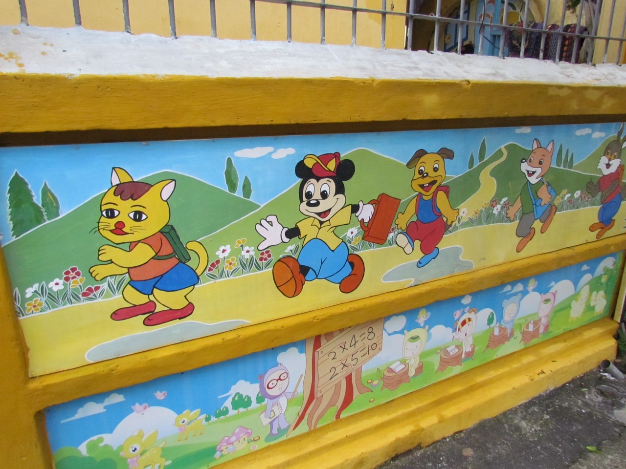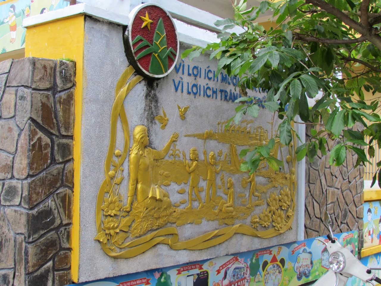 Vietnamese daycares and primary schools are a riot of colour, both inside and out. One we saw in Hoi An had a superb set of street-facing signs, a great blend of nutritional information, socialist realism, and Disney characters.