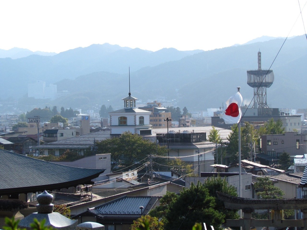 We arrived in Takayama in a bit of a race against the weather. After a beautiful week in Tokyo, a typhoon is headed our way. We wanted to make the most of our time in the mountains while the nice weather holds, so as soon as we arrived we threw our bags in a locker and went on the Higashiyama Walking Course, checking out the temples on this hillside and then trekking up to the top of the hill where the old Takayama castle used to sit. Just made it back to the train station as the last of the light was fading.