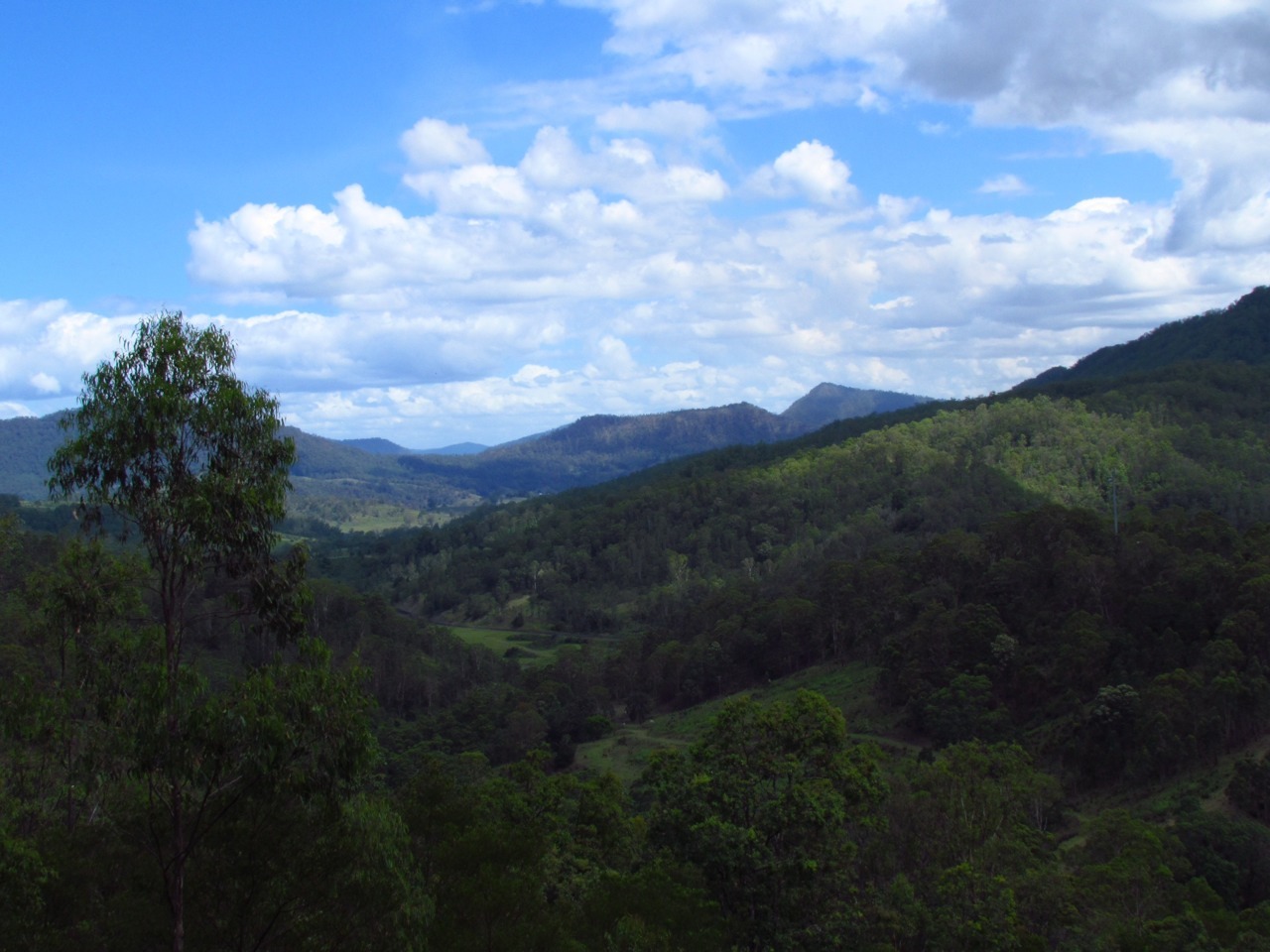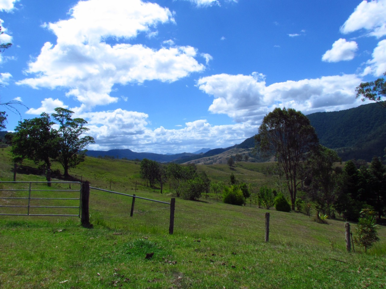 We drove up to Brisbane via the back roads rather than the motorway. A good portion of the road was actually built privately by the local Lion’s Club, and is now maintained at least partially through donations. It was really beautiful countryside, with rain forests and farmland interspersed. The road was almost incidental, and indeed there are no fences keeping the cattle off the road. The sounds were also incredible…we’re not sure what the birds were, but they had such a loud, piercing, mesmerizing call.