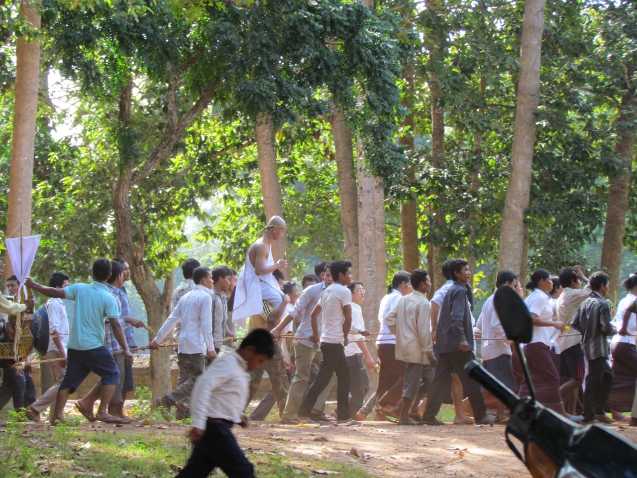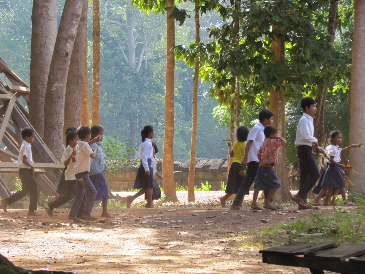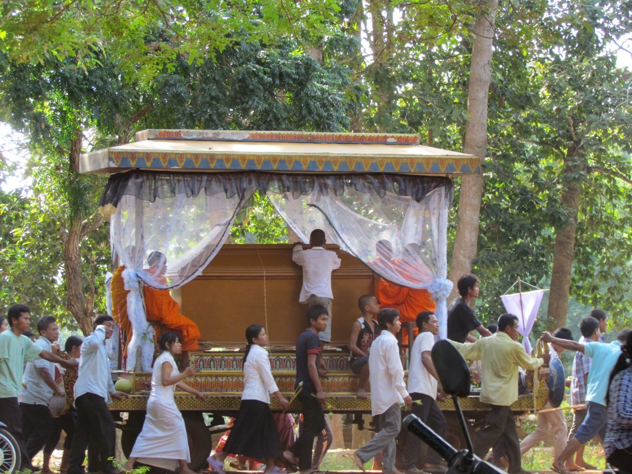 While we stopped for lunch near Roluos, we happened upon a funeral procession going by. Our tuk-tuk driver told us that children are always part of the funeral procession to help them understand that sickness and death are a part of life.